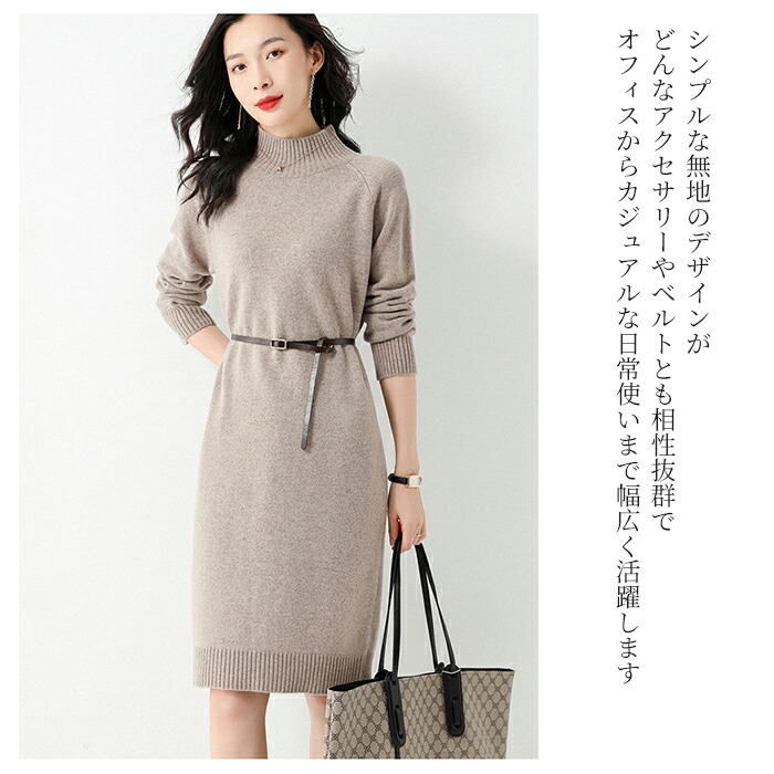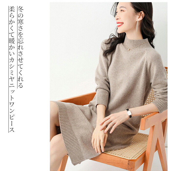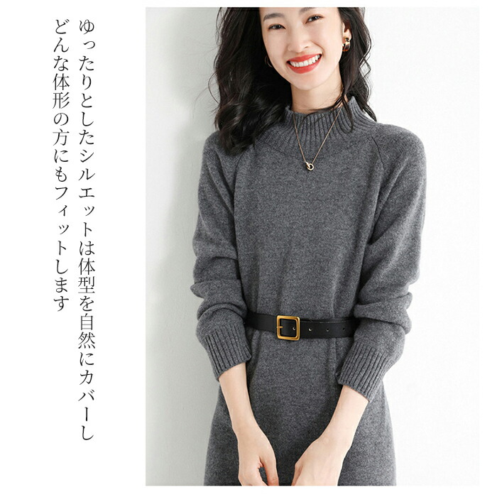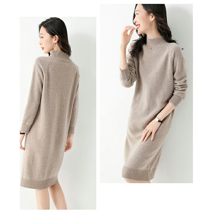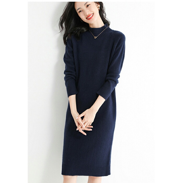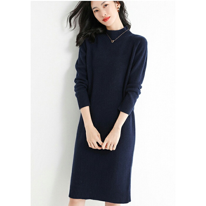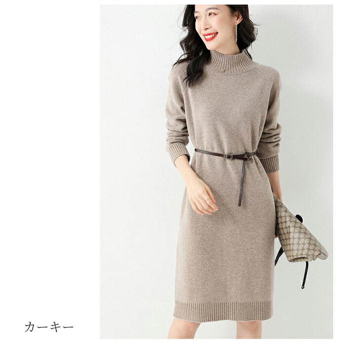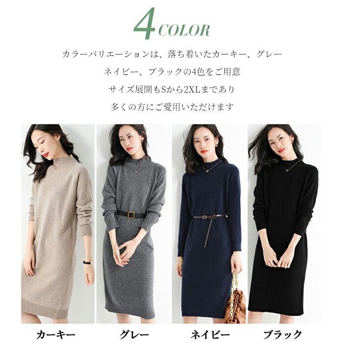ワンピース レディース カシミヤ ニッ ワンピース 続々登場 カーキー グレー ネイビー ブラック S M L XL 2XL