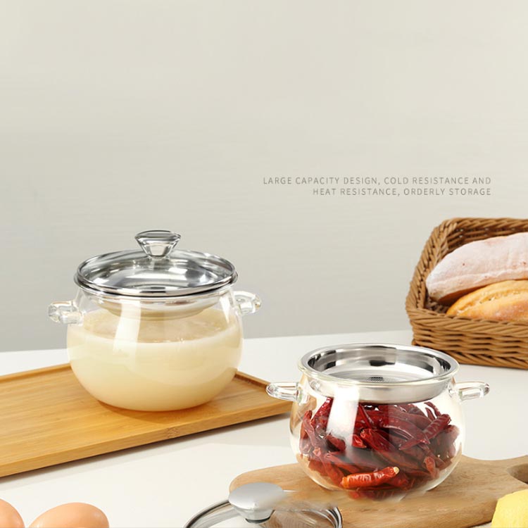 深型 両手鍋 オイル保存容器 ガラス鍋 保存容器 調味料入れ 保存容器 キャニスター 新登場! オイル保存*こし網付き 漬物保存*スプーン付き