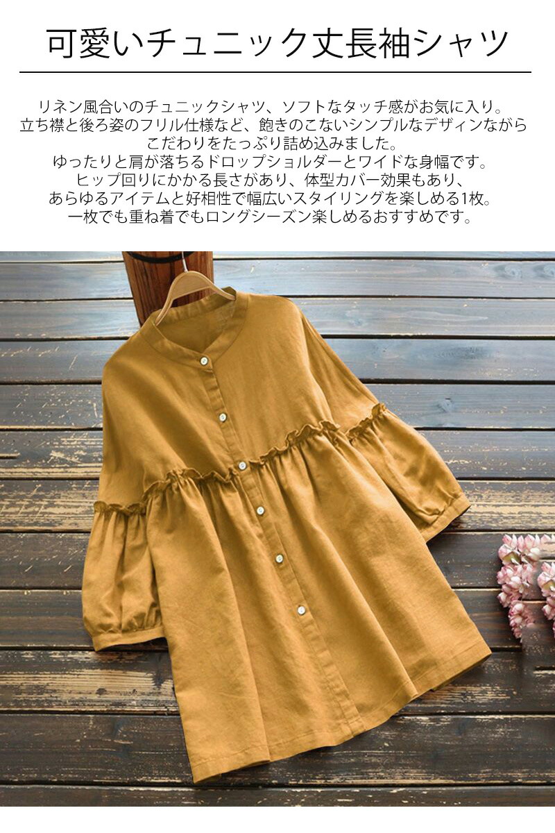 チュニック シャツ 長袖 レディース チュニック 新作 ブラック カーキグリーン イエロー M L XL 2XL
