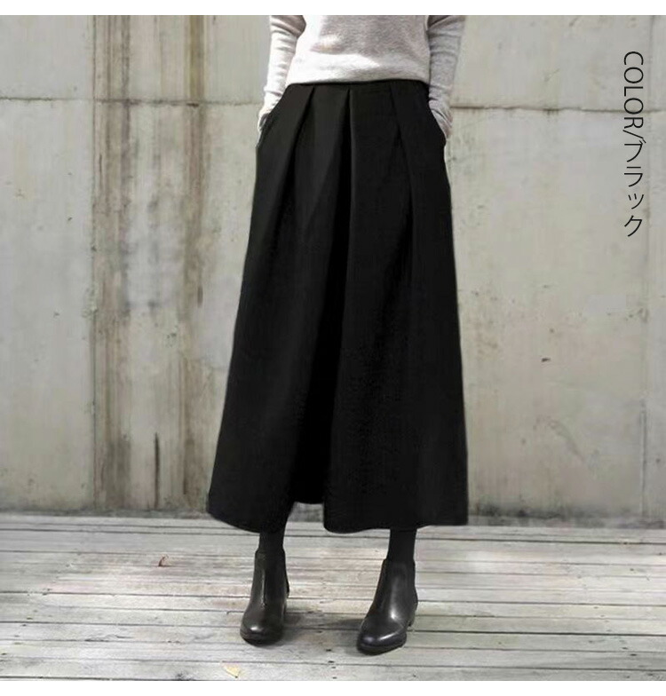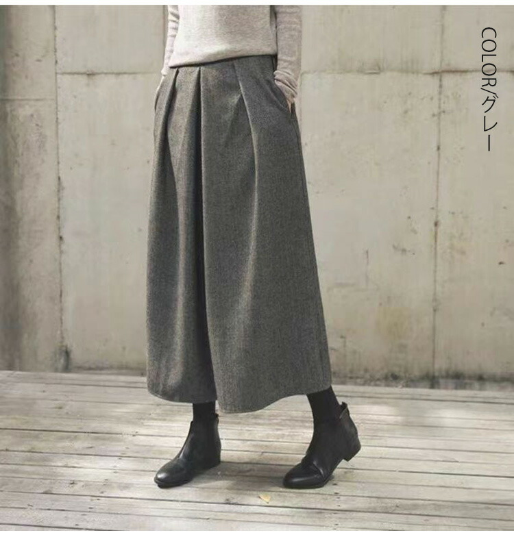 ワイドパンツ 秋冬 ウール調 ガウチョ レディースファッション 続々登場 ブラック グレー 人字柄グレー M L XL