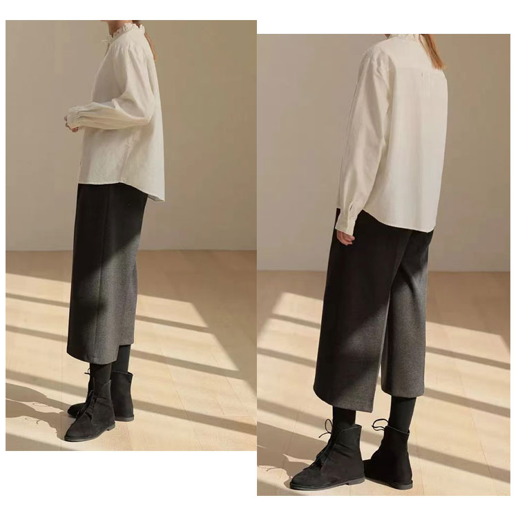 ウール調 ガウチョパンツ レディース ボトムス パンツ 続々登場 グレー ブラック