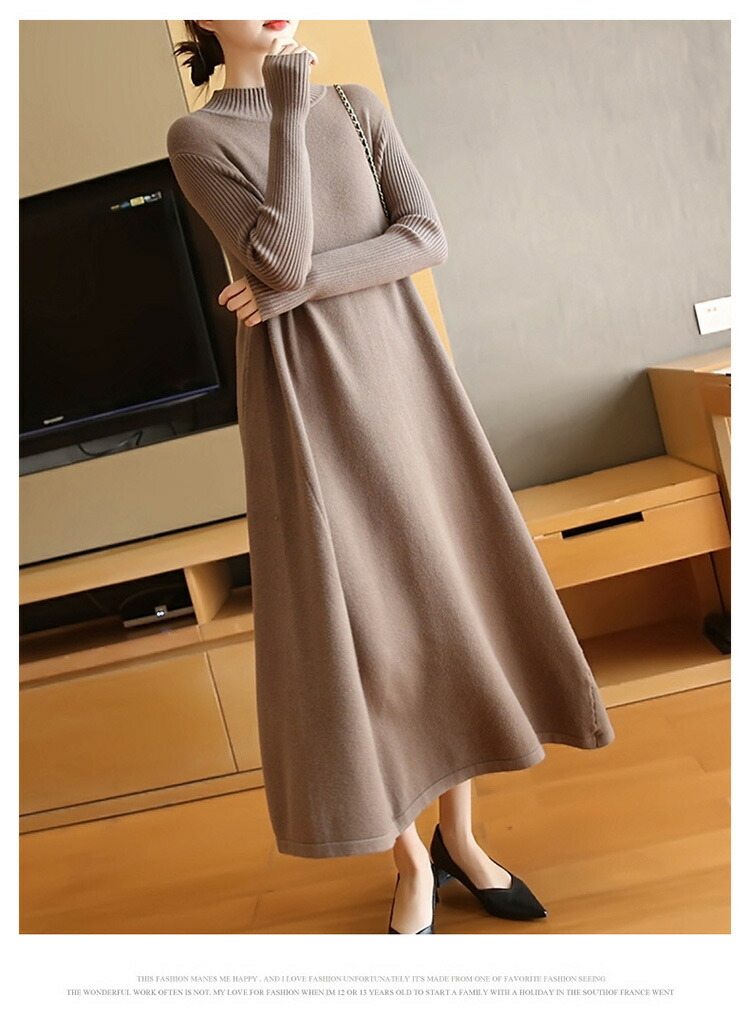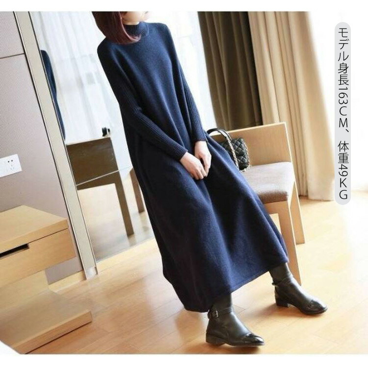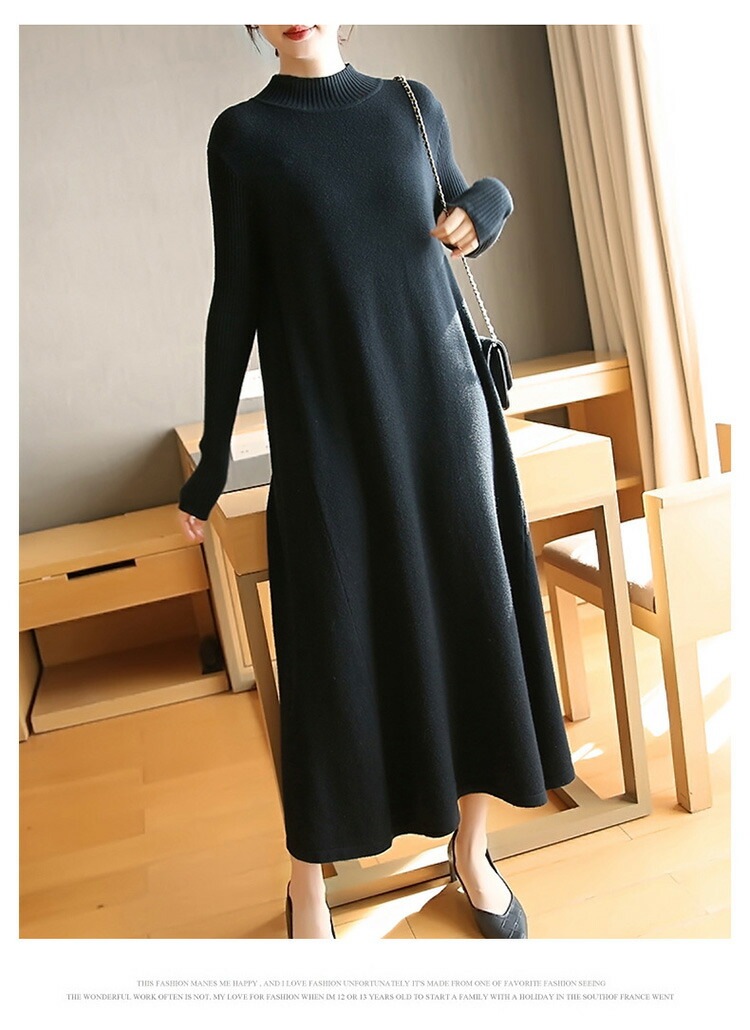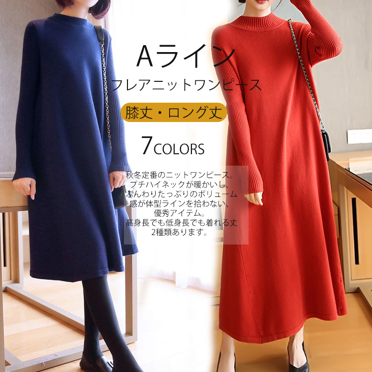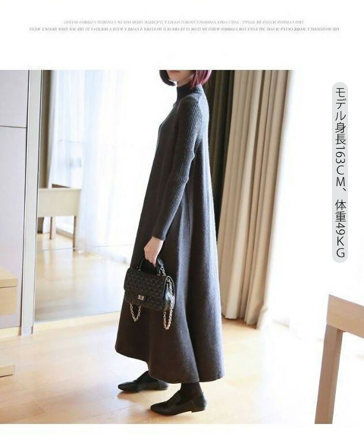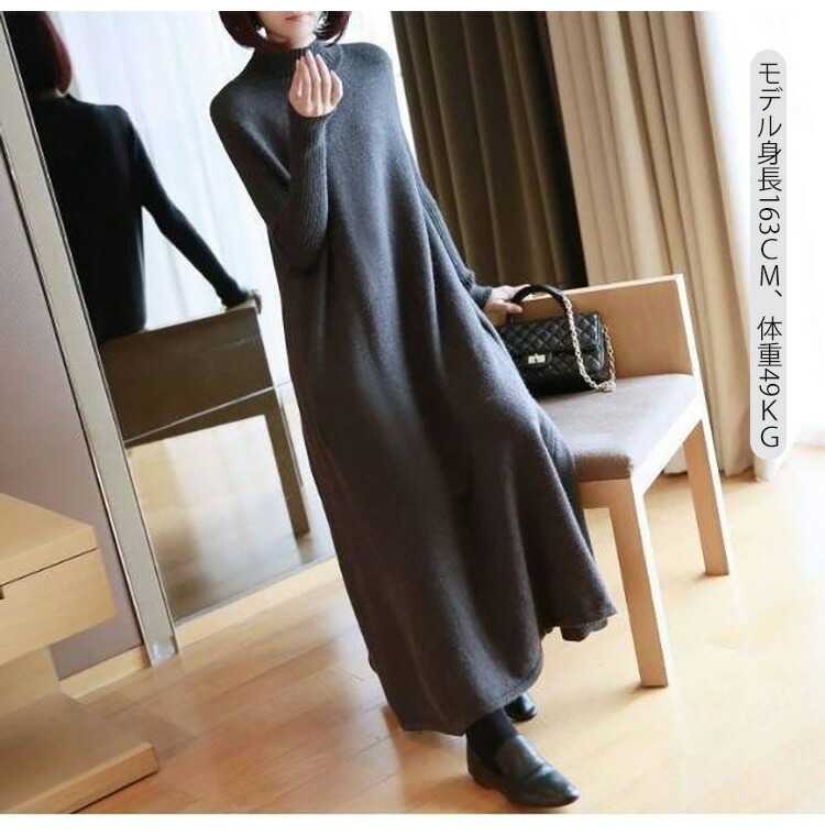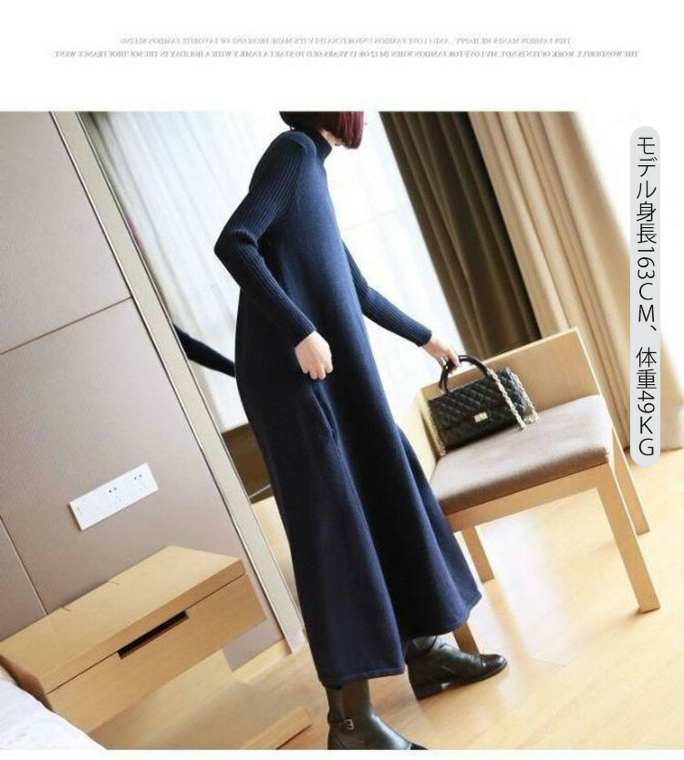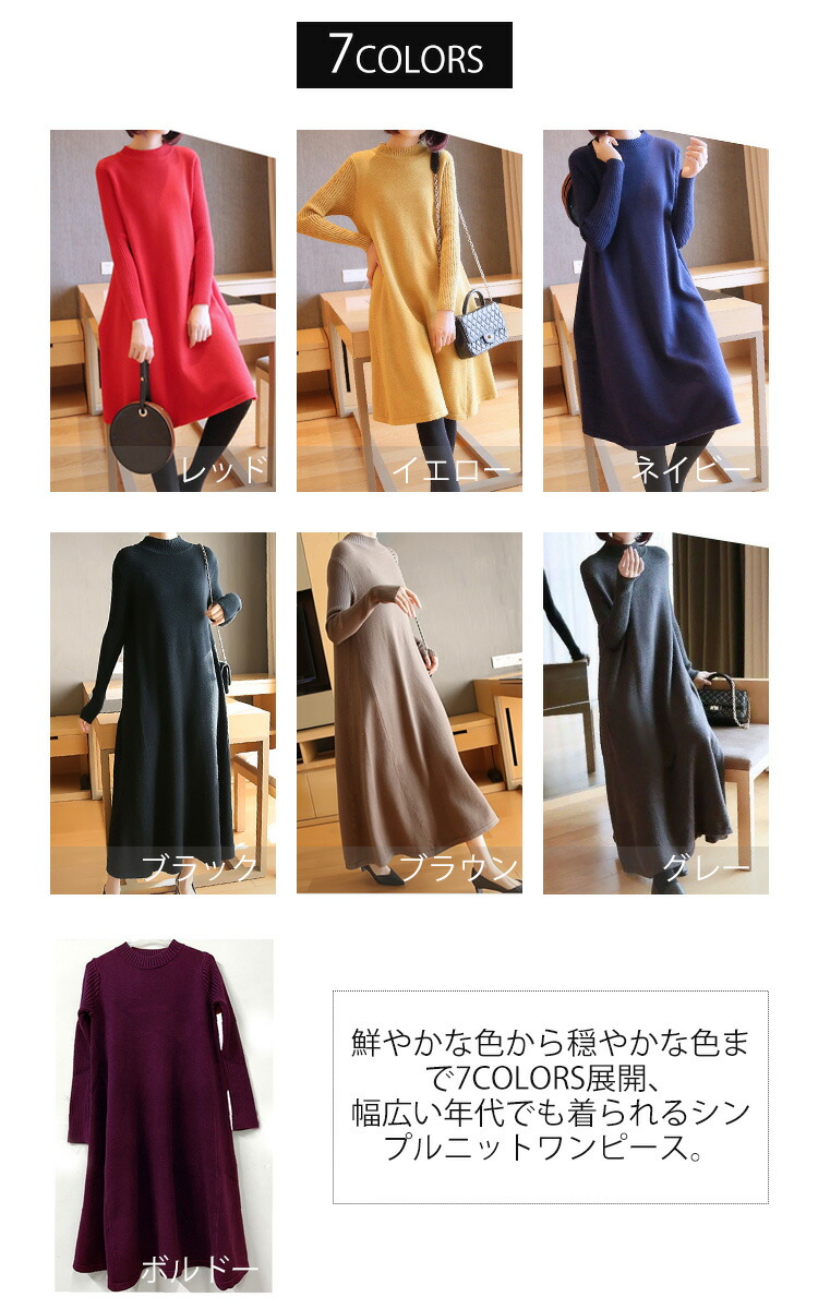 ニットワンピース 秋冬 ロング丈 ロン レディースファッション 超目玉商品 ブラック グレー ネイビー ブラウン レッド イエロー ボルドー 膝丈 ロング丈