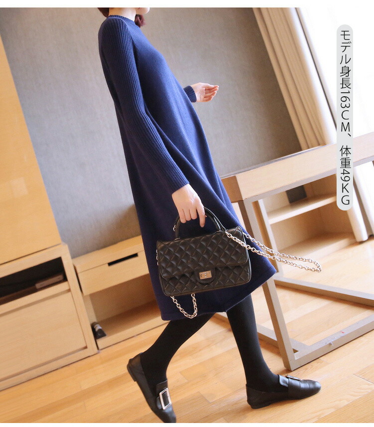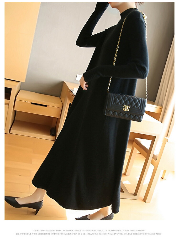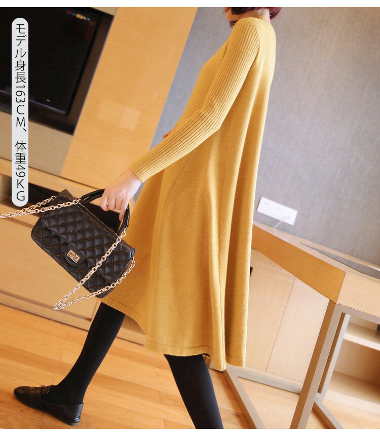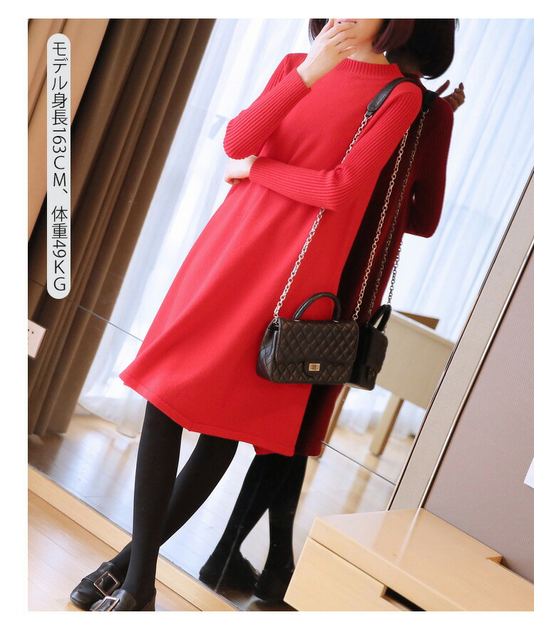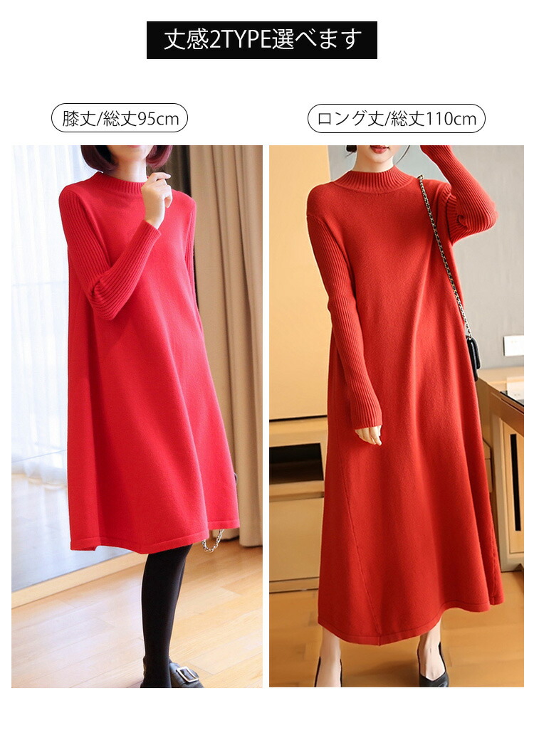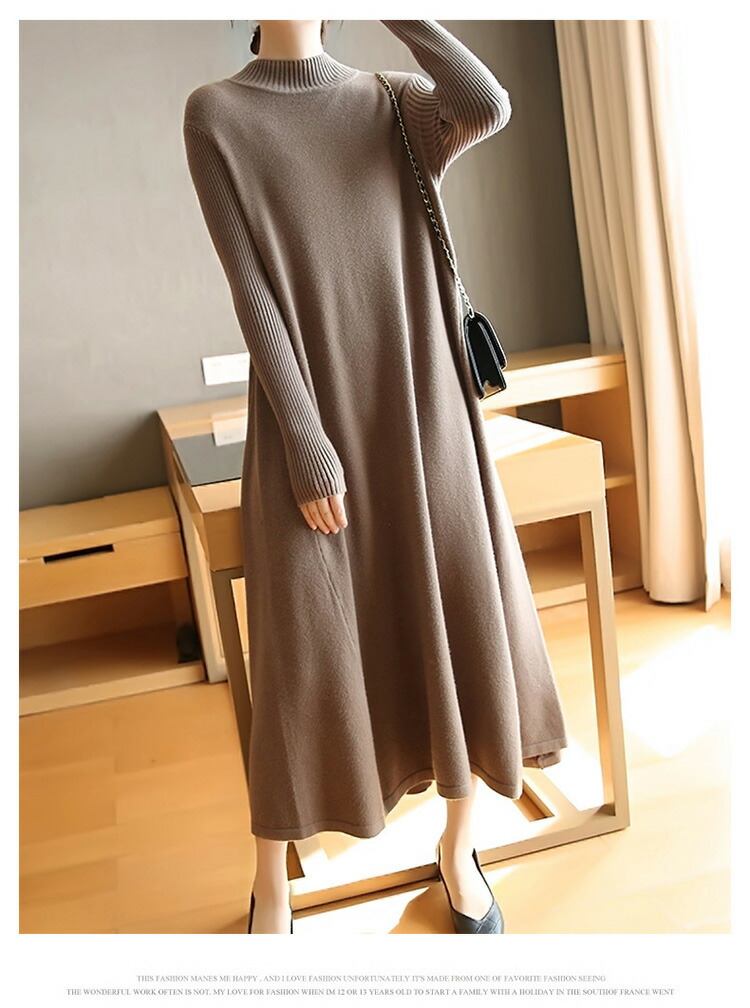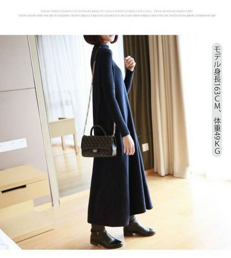ニットワンピース 秋冬 ロング丈 ロン レディースファッション 超目玉商品 ブラック グレー ネイビー ブラウン レッド イエロー ボルドー 膝丈 ロング丈