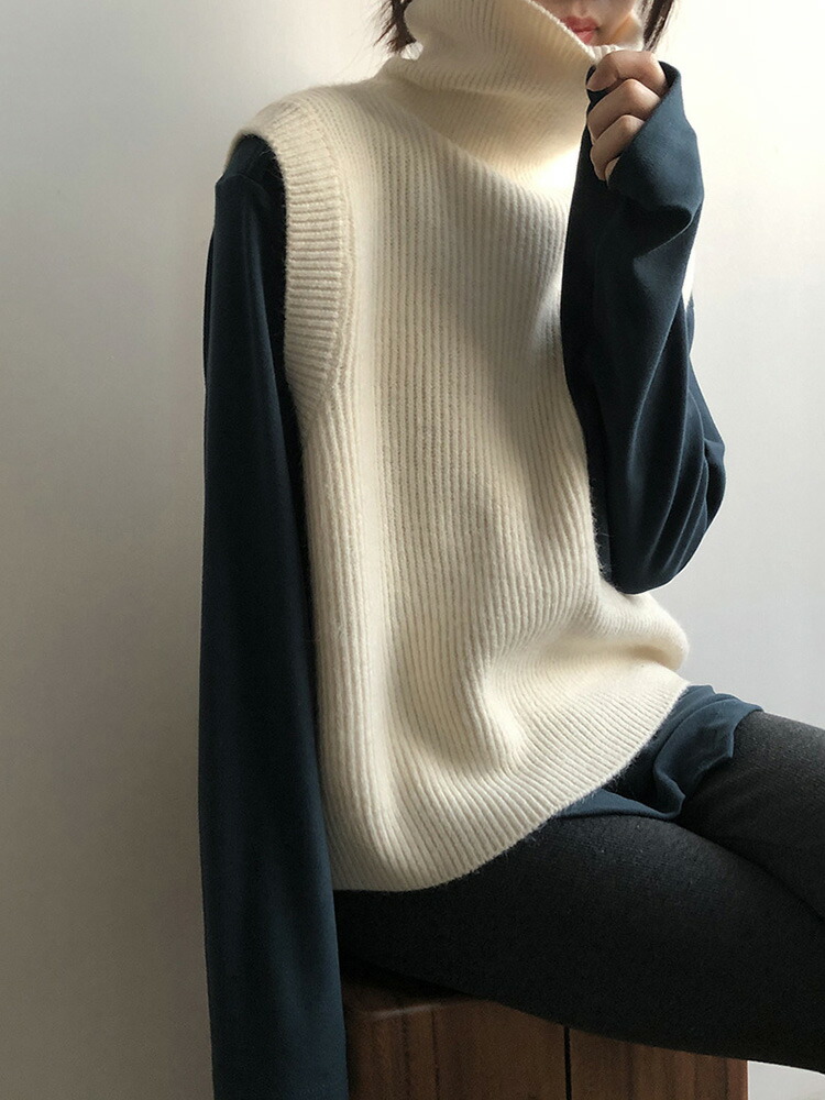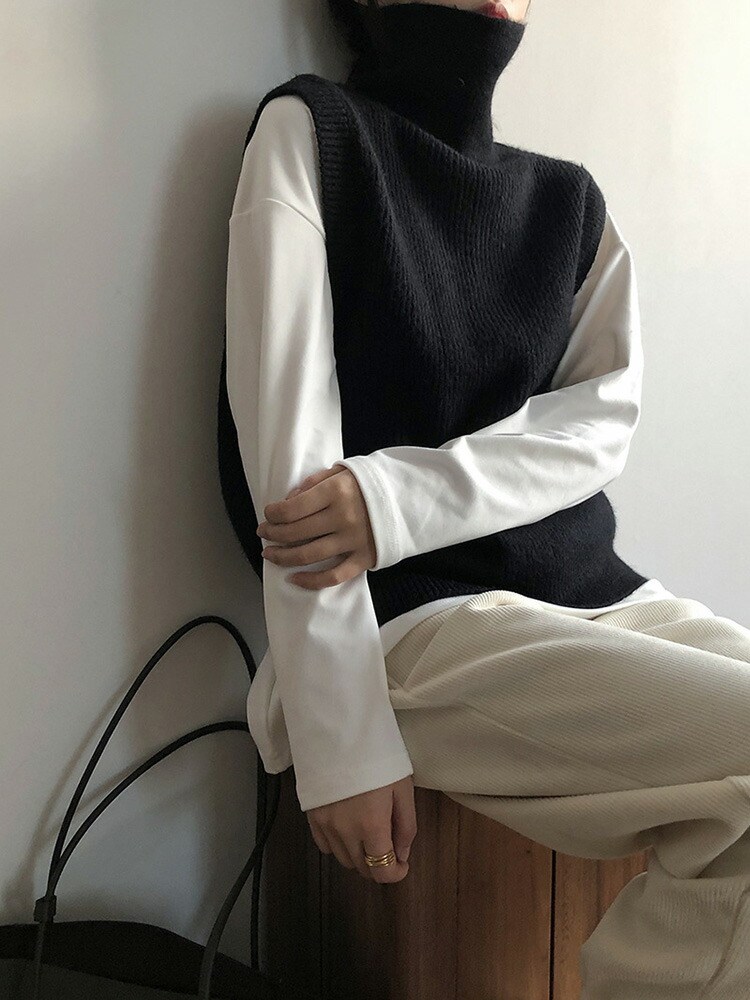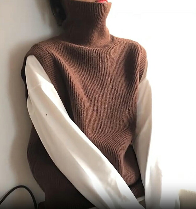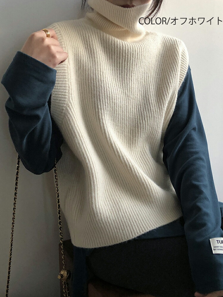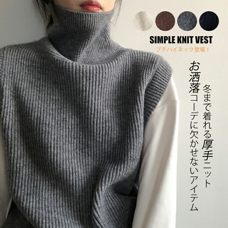 ニットベスト レディース 秋冬 ハイネ トップス ベスト 豊富な品揃え オフホワイト コーヒー色 グレー ブラック タートルネック プチハイネック