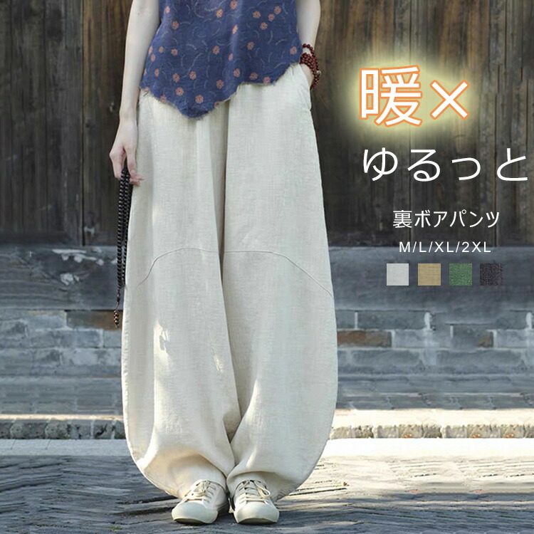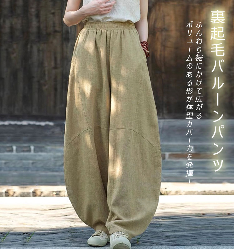 裏起毛 バルーンパンツ レディース 秋 ボトムス パンツ 続々登場 ブラック イエロー グリーン 麻色 M L XL 2XL
