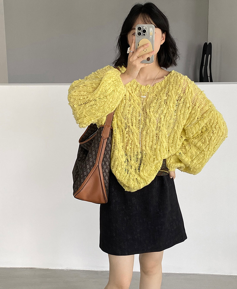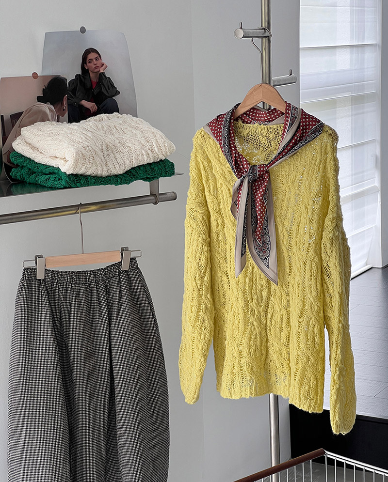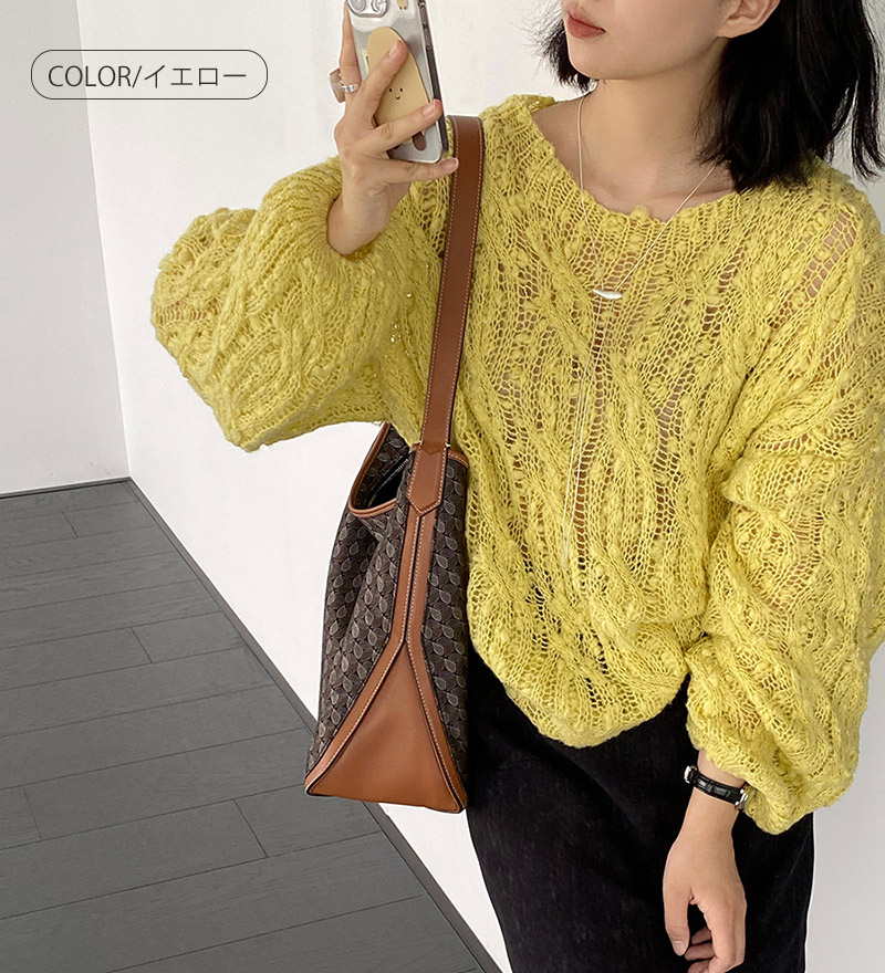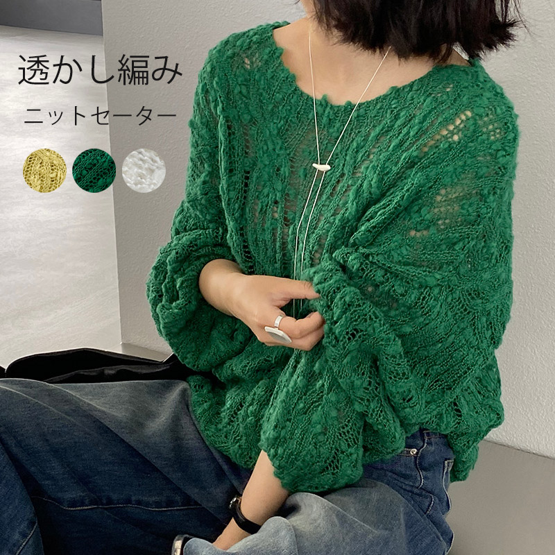 ニット 透かし編み シアー プルオーバ レディースファッション 豊富な品揃え アイボリー グリーン イエロー