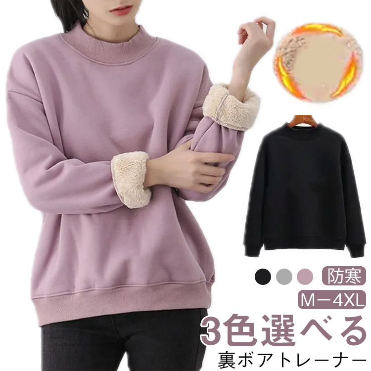 裏ボア スウェット 裏起毛 上 プルオ レディースファッション 人気 パープル ブラック グレー M L XL 2XL 3XL 4XL
