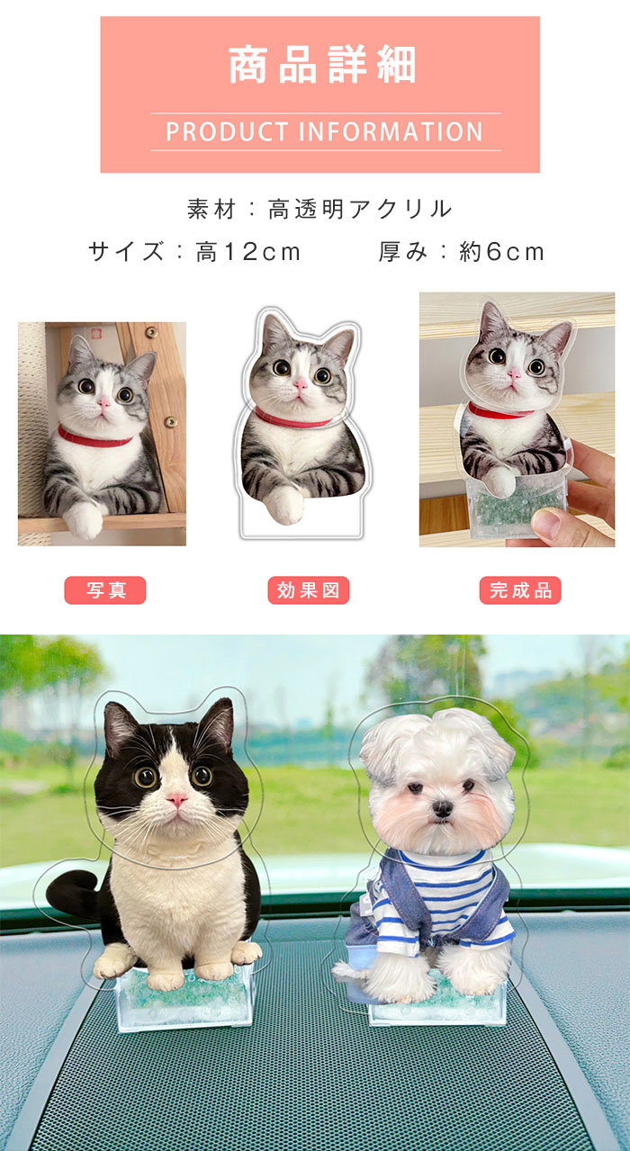 ペット オリジナル 首振り アクリル 猫用品 オーナーズグッズ 豊富な品揃え 1-半身&全身 2-マージャン 3-車 4-電動バイク 5-スイカ
