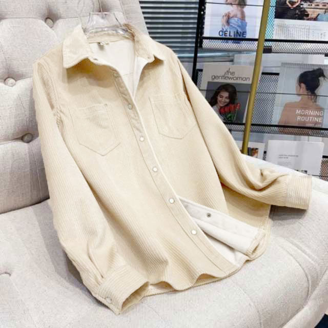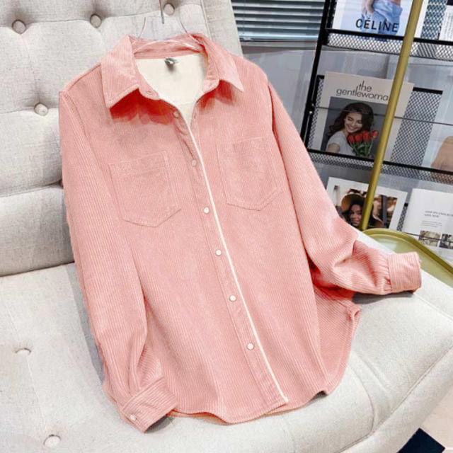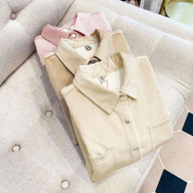 コーデュロイ ビッグ シャツ 長袖 ト トップス シャツ ブラウス 続々登場 ベージュ アイボリー ピンク S M L XL 2XL 3XL