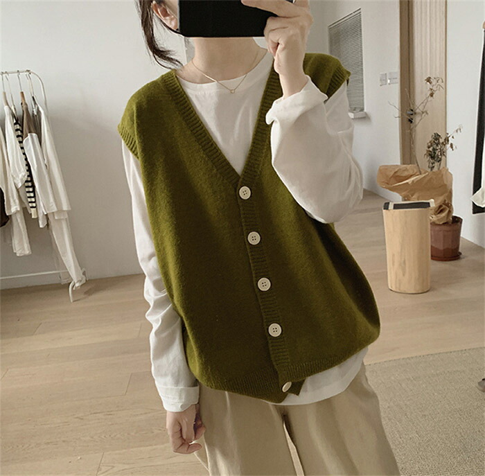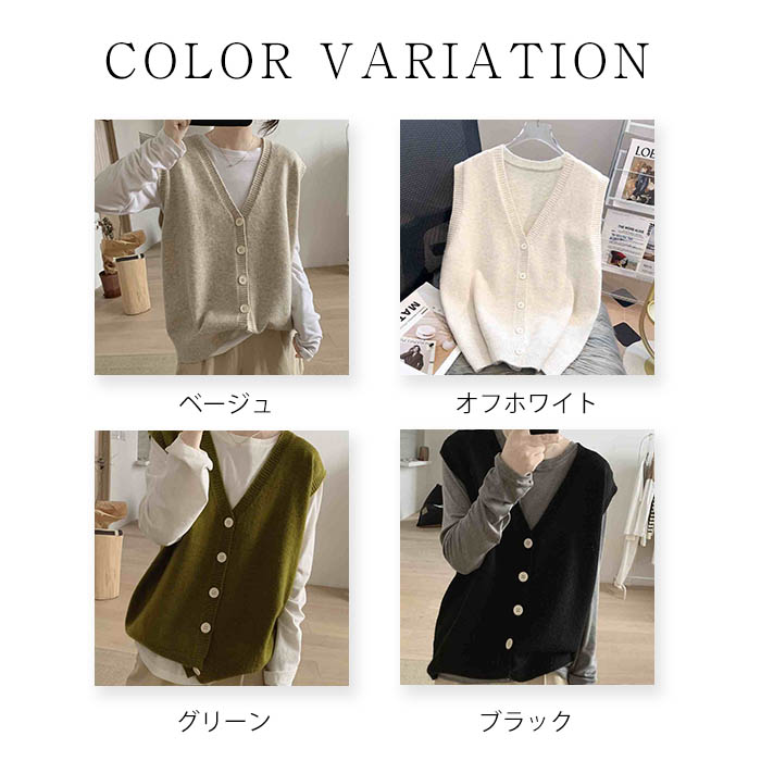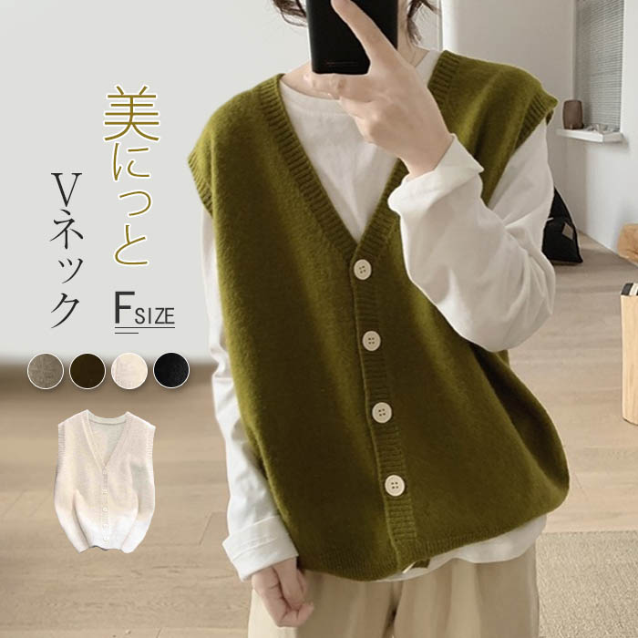 ニット ベスト 前開き レディース 秋 レディースファッション 豊富 ベージュ ブラック グリーン オフホワイト