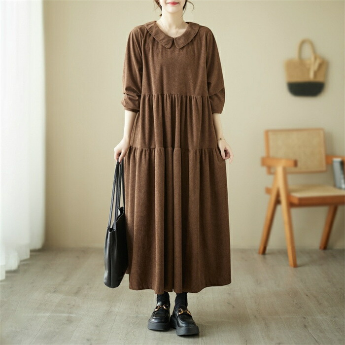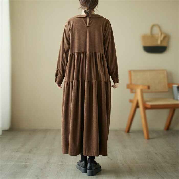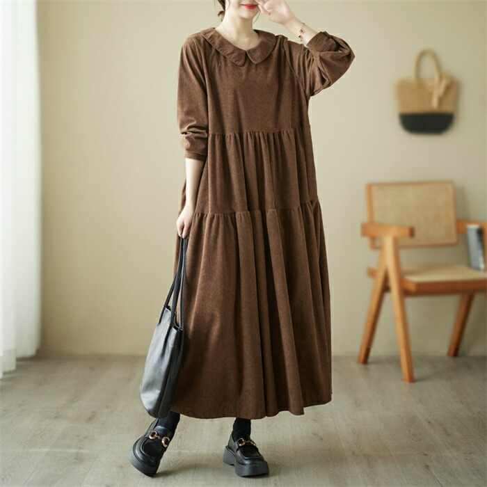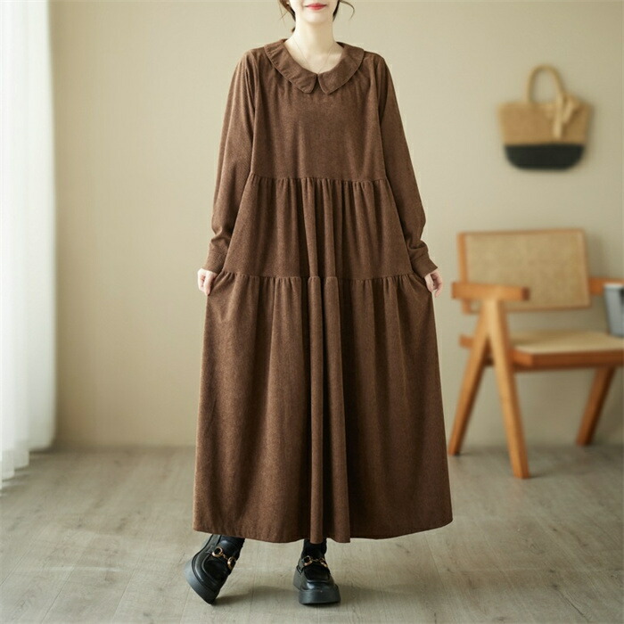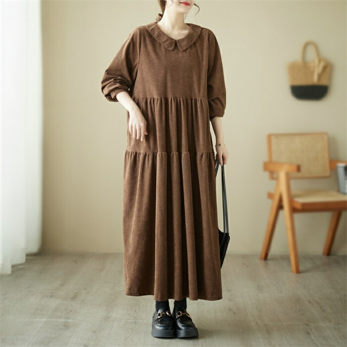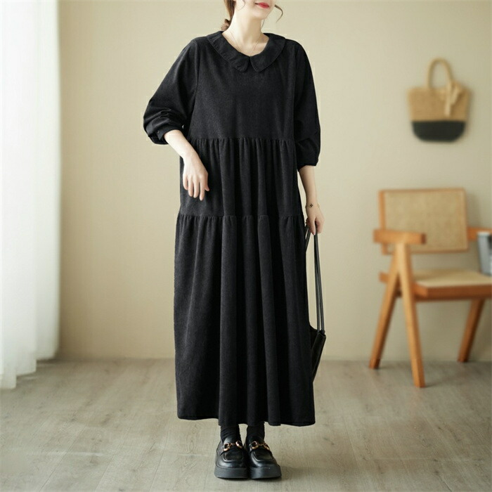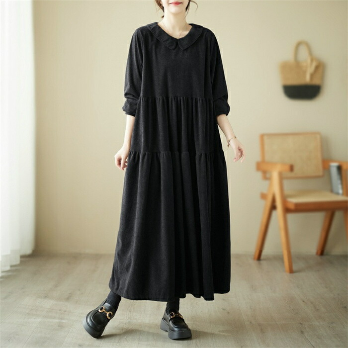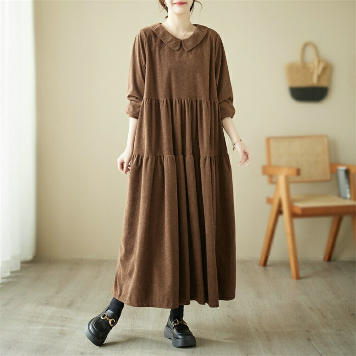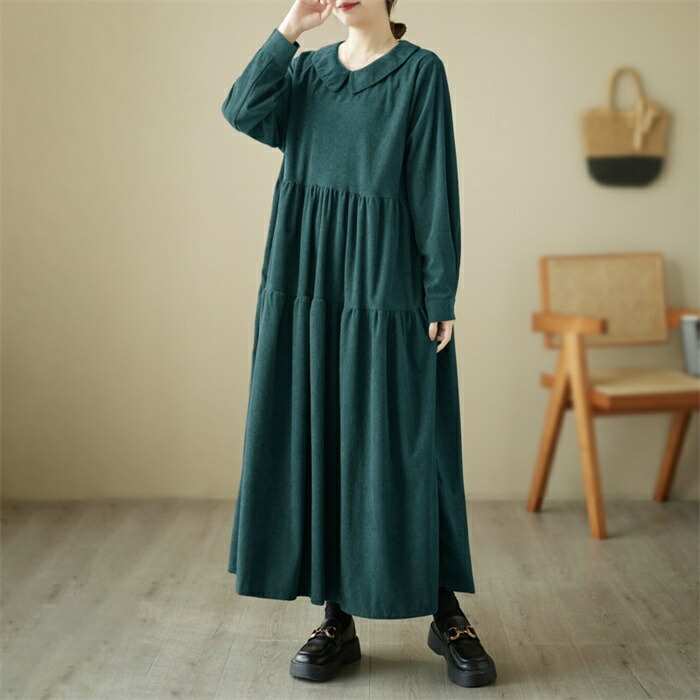 シャツワンピース 秋冬 コーデュロイワ ブラック グリーン コーヒー