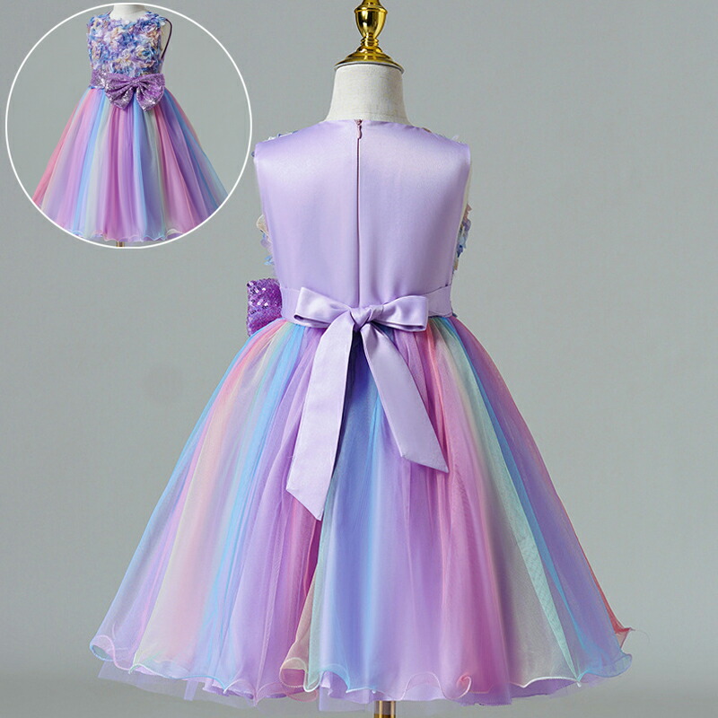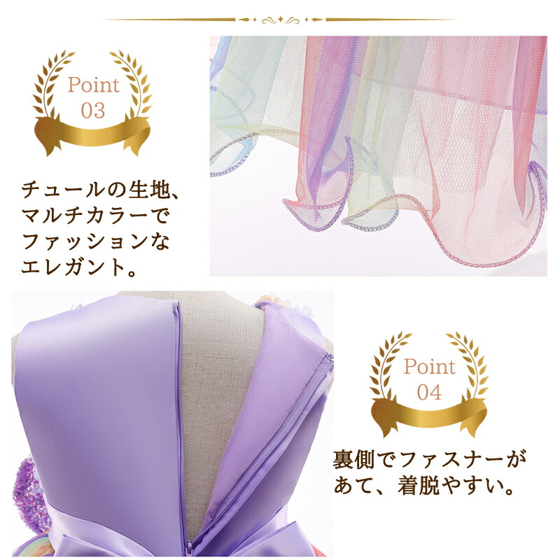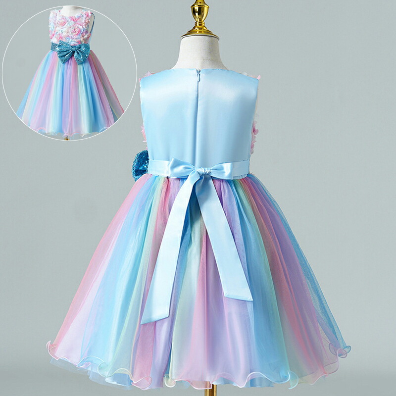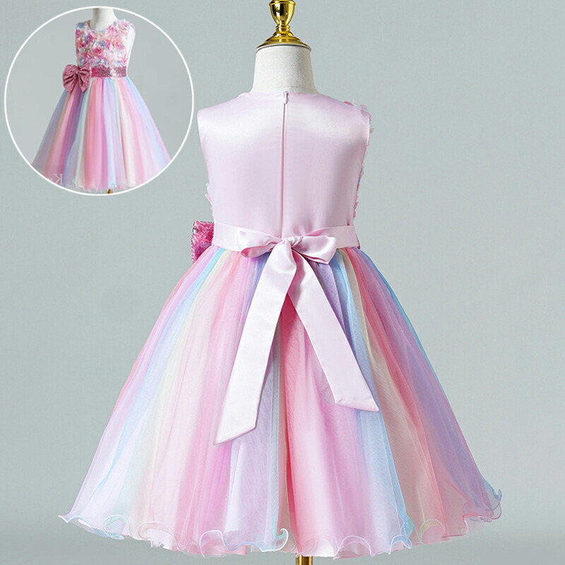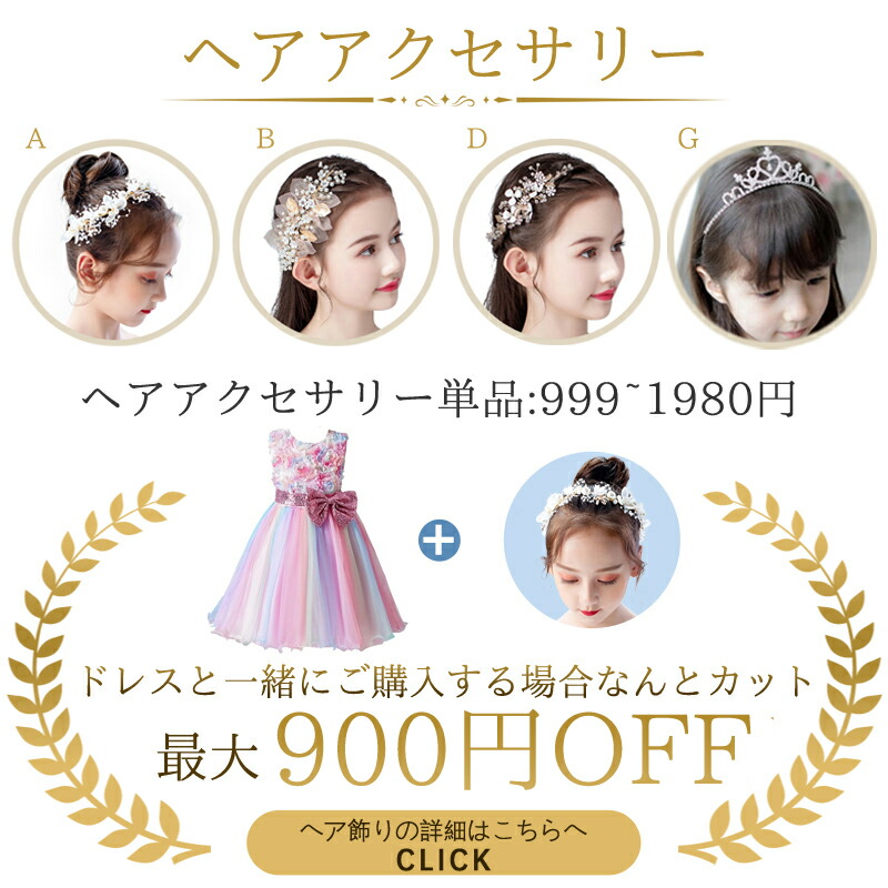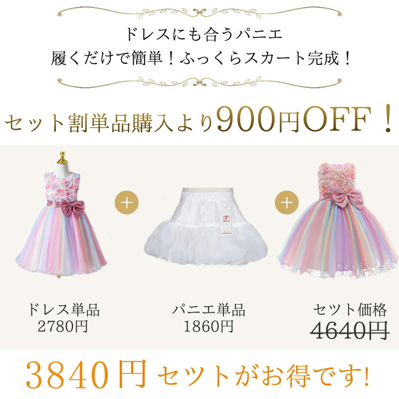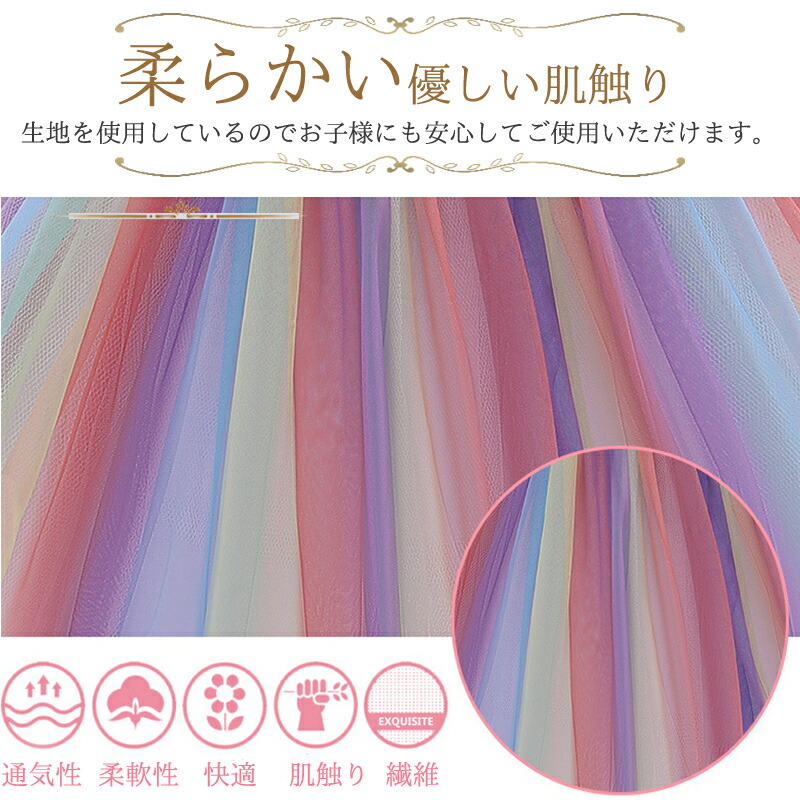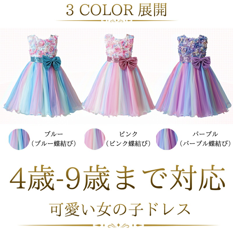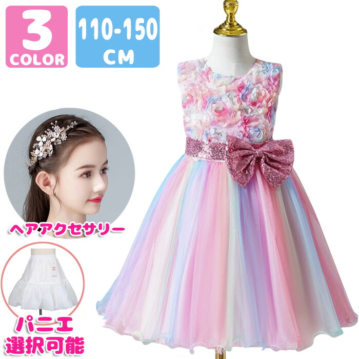 子供ドレス ピアノ 発表会 キッズドレス 110-150CM 虹色 ヘア飾り パニエ こども フォーマル パーティー 花柄 ベビードレス スバンコール フラワーガール レインボー 誕生日 リボンドレス
