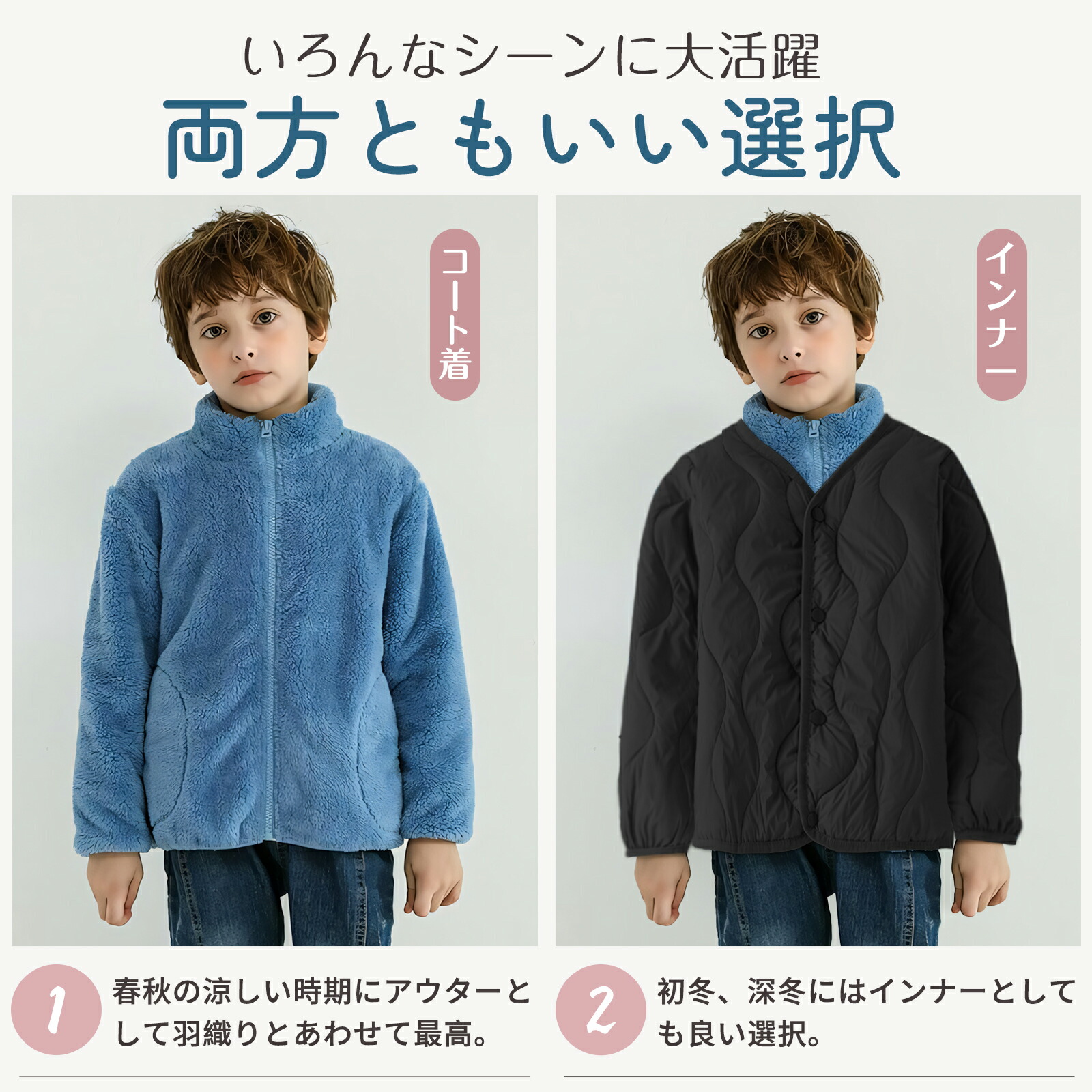 独自品質 洗える ボア ジャケット ジ キッズ コート ジャケット 新登場! ピンク カーキ ネイビー パープル オフホワイト グレー ブルー グリーン 100cm 110cm 120cm 130cm 140cm 150cm 160cm 170cm 180cm