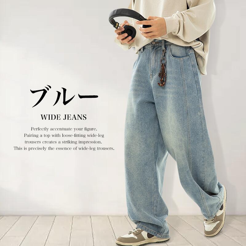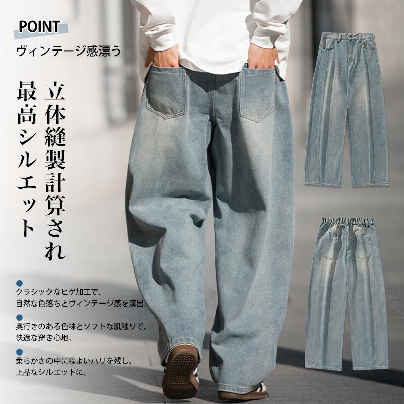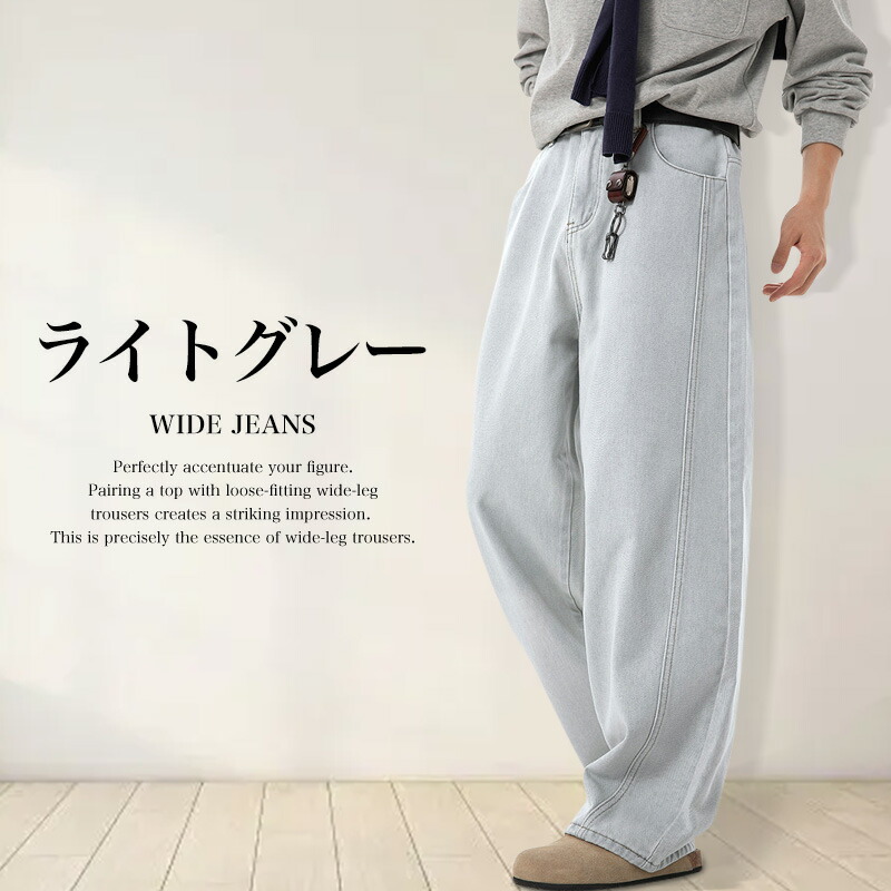 デニムパンツ メンズ ズボン ワイドパ メンズファッション 早い者勝ち ブルー グレー ライトグレー ブラック 純黒 M L XL 2XL 3XL