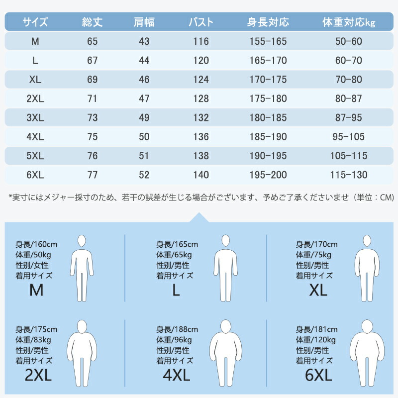 M、L、XL、2XL、3XL、4XL、5XL、6XL