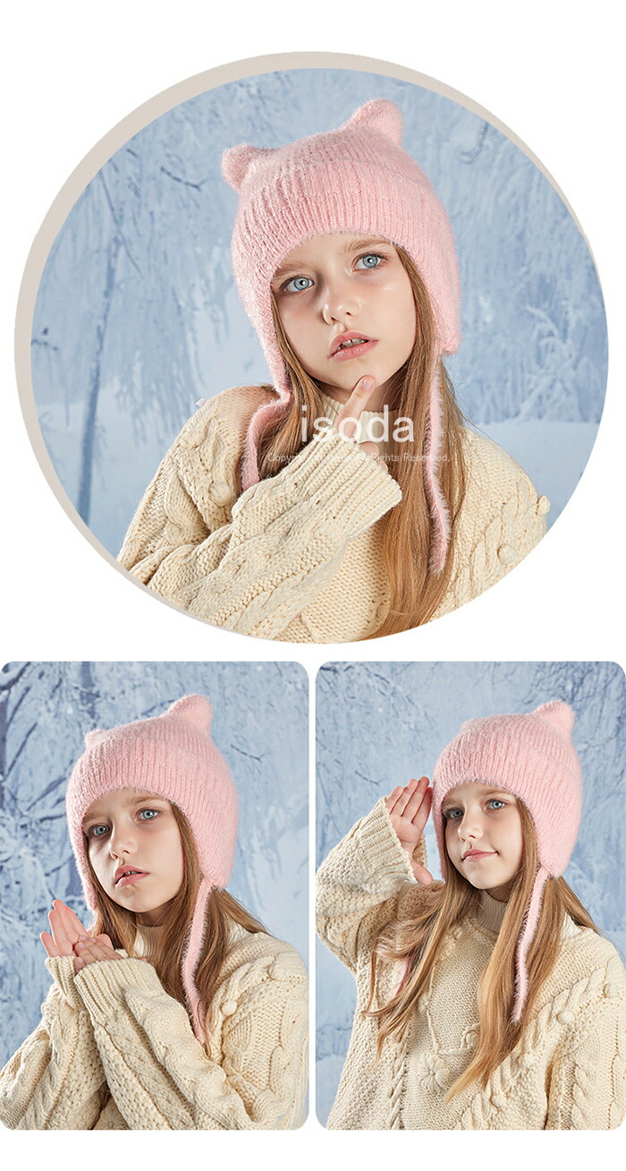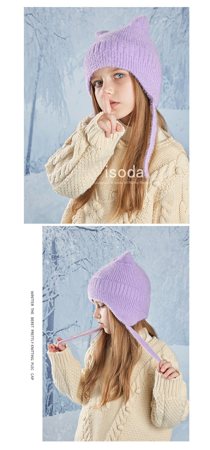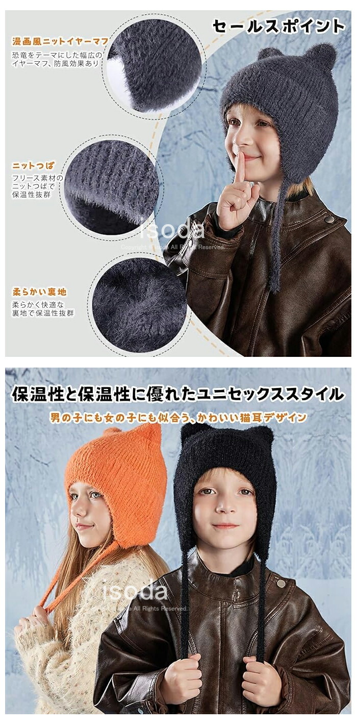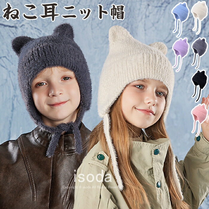 ニット帽 キッズ 耳当て ネコ耳 男の キッズ ベビー マタニティ 新登場! ベージュ ブラック グレー パープル ブルー ピンク