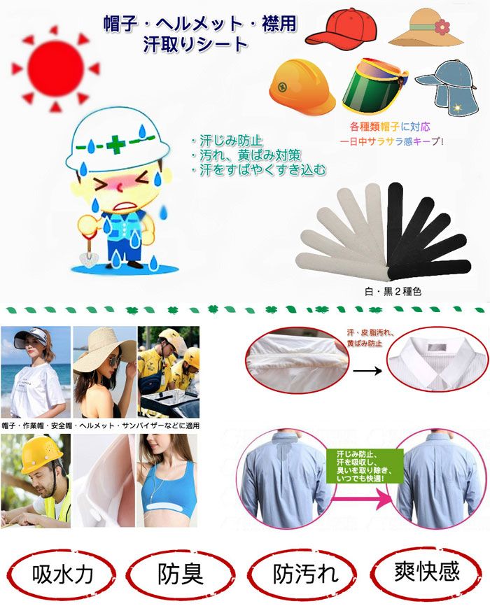 汗取りパッド ひたい 50枚入り 大人 ホワイト ブラック ホワイト20枚+ブラック30枚