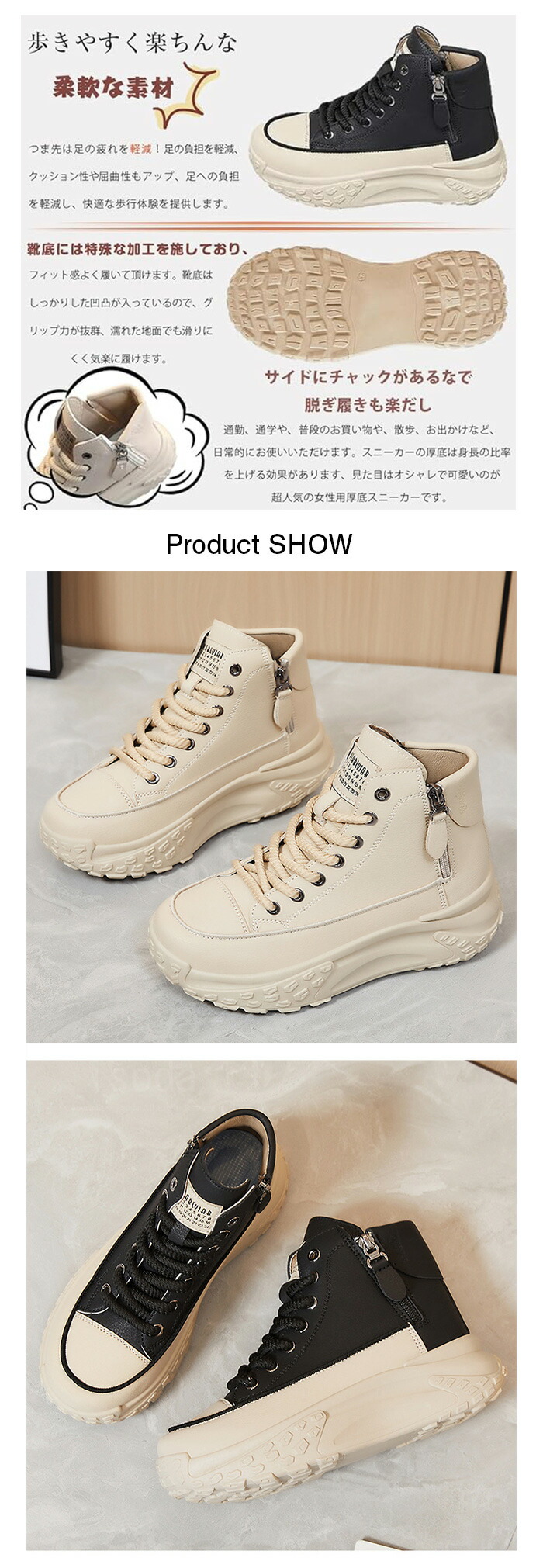厚底 スニーカー レディース レディー 靴 人気 ホワイト ベージュ ブラック 37#(約23.5~24.0CM 適用程度) 38#(約24.0~24.5CM 適用程度) 39#(約24.5~25.0CM 適用程度) 40#(約25.0~25.5CM 適用程度) 41#(約25.5~26.0CM 適用程度) 42#(約26.0~26.5CM 適用程度)