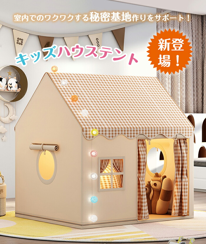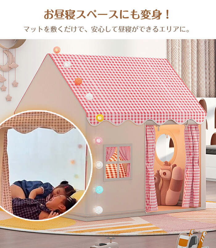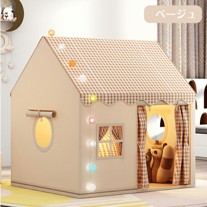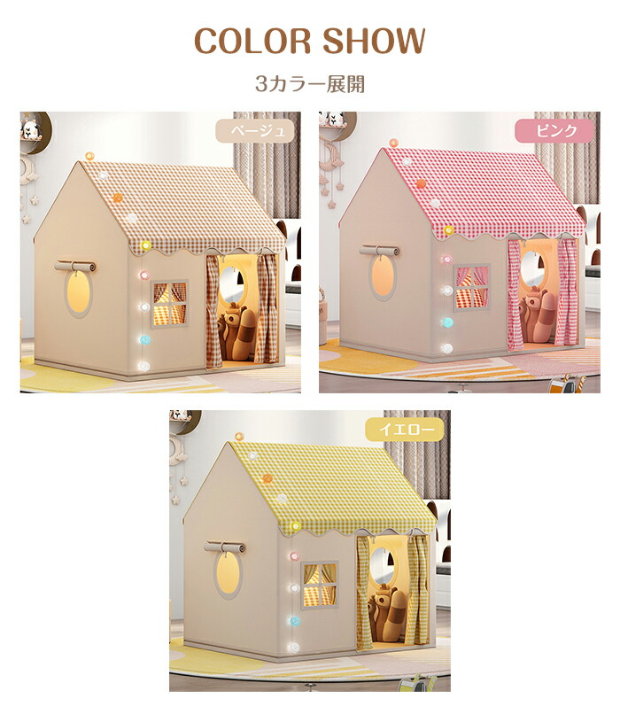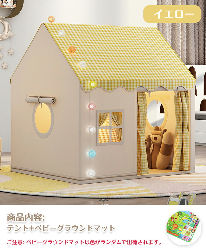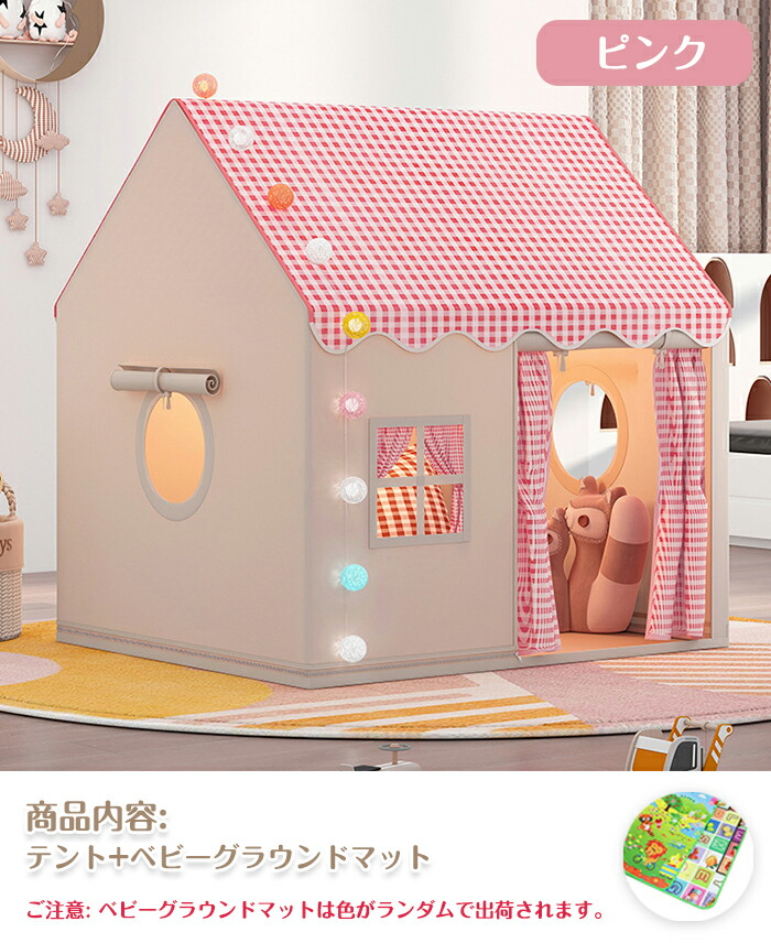キッズテント 室内テント 収納袋付き おもちゃ スポーツトイ アクショントイ 大型遊具 プレイハウス テント 通販 ベージュ ピンク イエロー テント+マット テント+マット+綿球ライト+飾り物