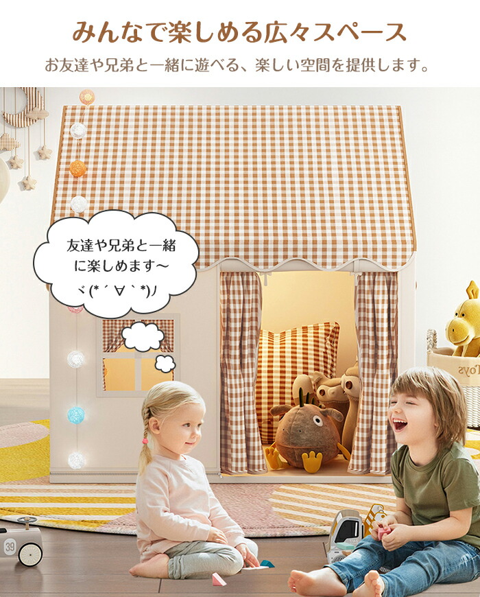 この秘密基地テントは、パーティー、ピクニック、BBQ、遊び場、保育園、学校、カーニバル、お泊まり会など、さまざまなシーンで大活躍します。また、子供部屋に設置することで、おもちゃの一部としてもご利用いただけます。3歳から8歳の男の子や女の子にぴったりのアイテムです。