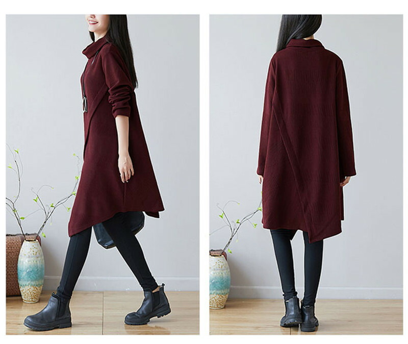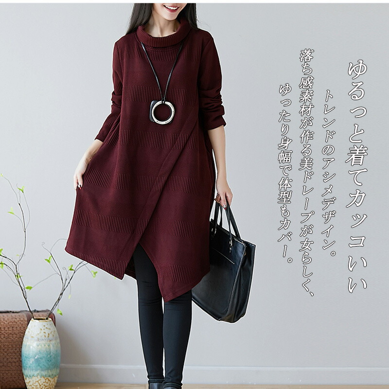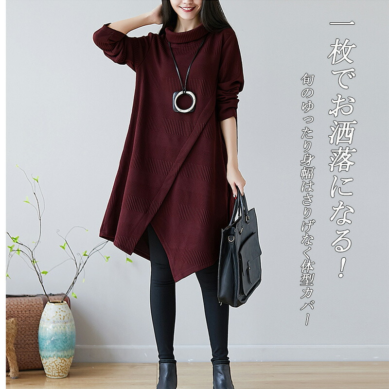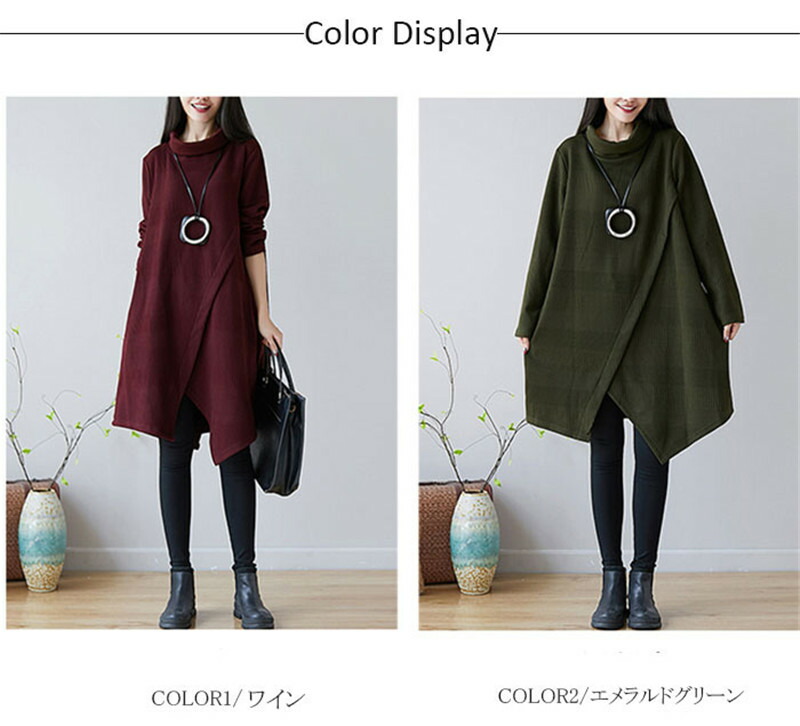 チュニック ワンピース レディース 長 レディースファッション 新登場! ワイン グリーン M L XL 2XL