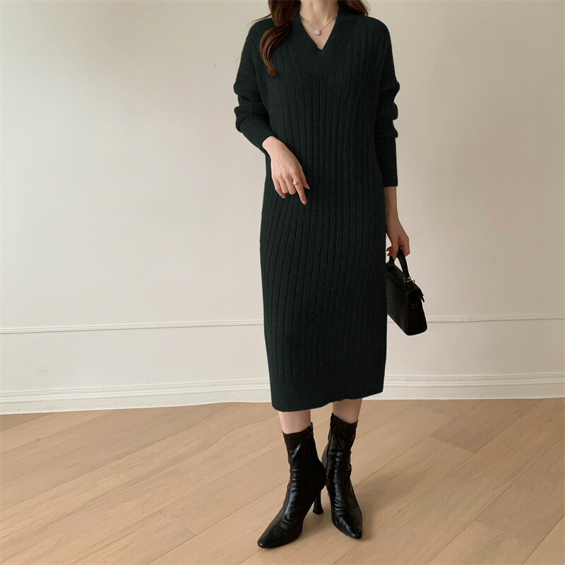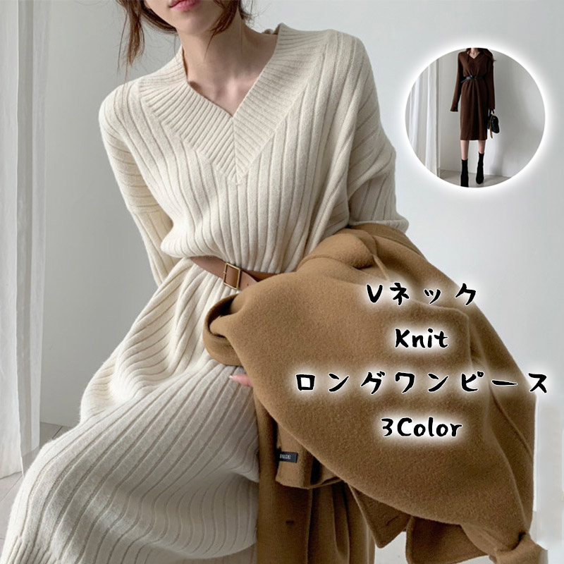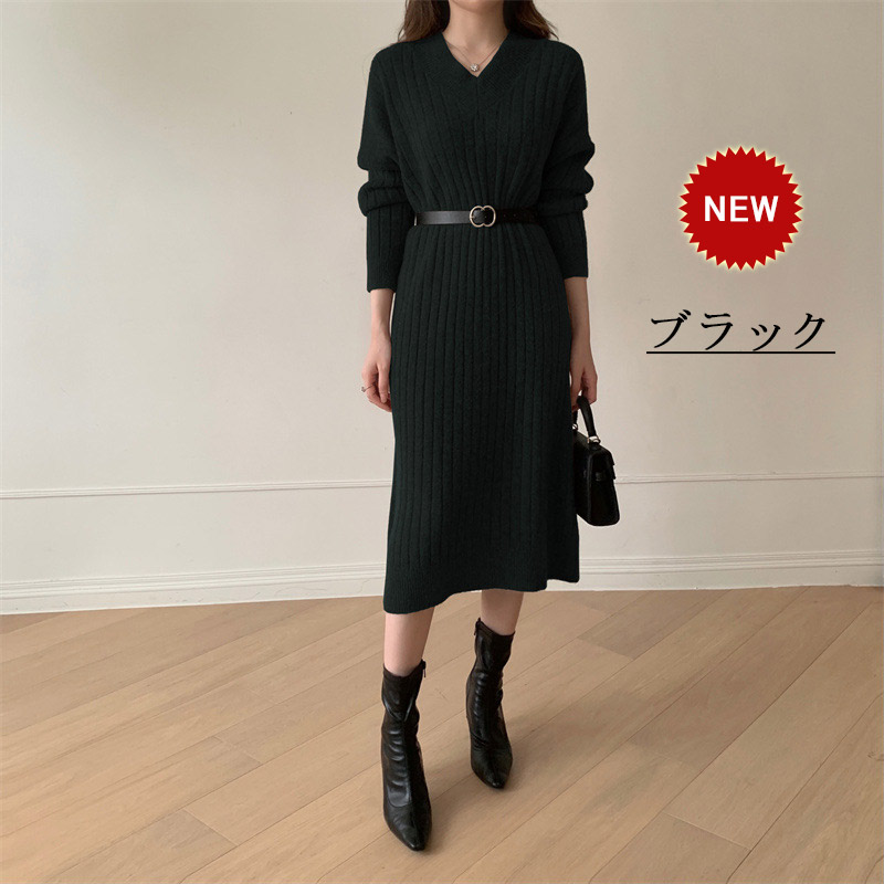 ニット ワンピース 冬 ロング丈 ニッ ワンピース 新登場! コーヒー 杏色 ブラック