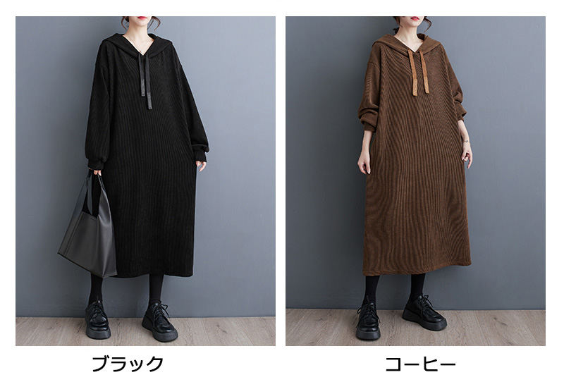 パーカーワンピース マキシワンピース レディースファッション 新登場! ブラック コーヒー L XL