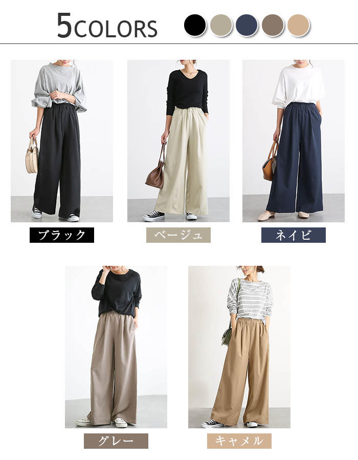 ワイドパンツ 秋 秋冬 レディース ロ ボトムス パンツ 続々登場 ブラック ベージュ ネイビ グレー キャメル M L XL