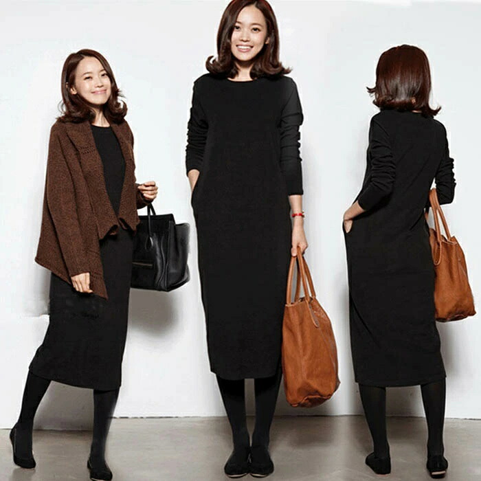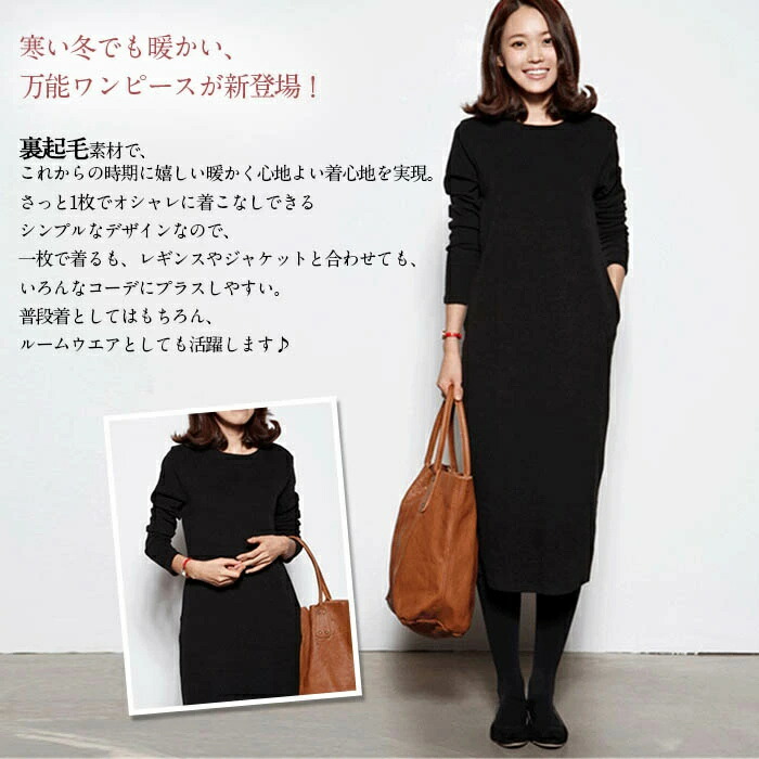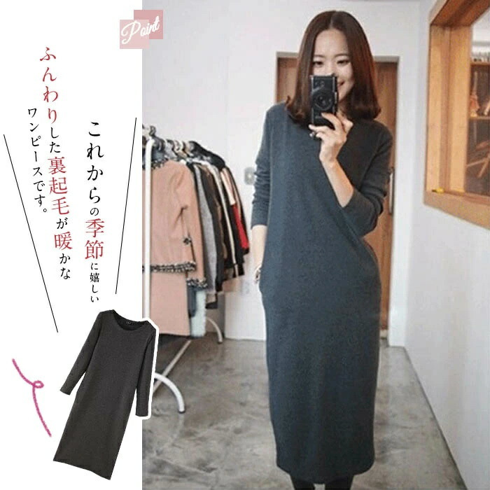 裏起毛 ワンピース ロングワンピース ワンピース 新登場! 黒 グレー M L XL 2XL