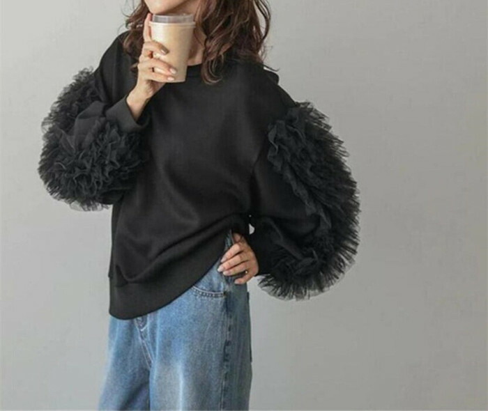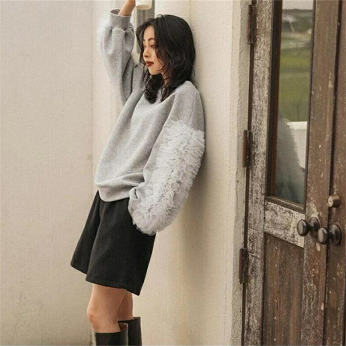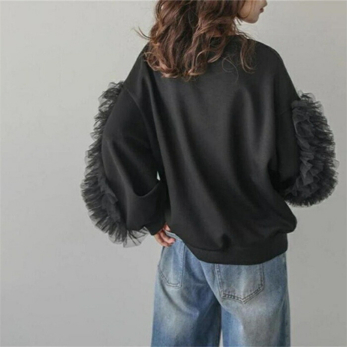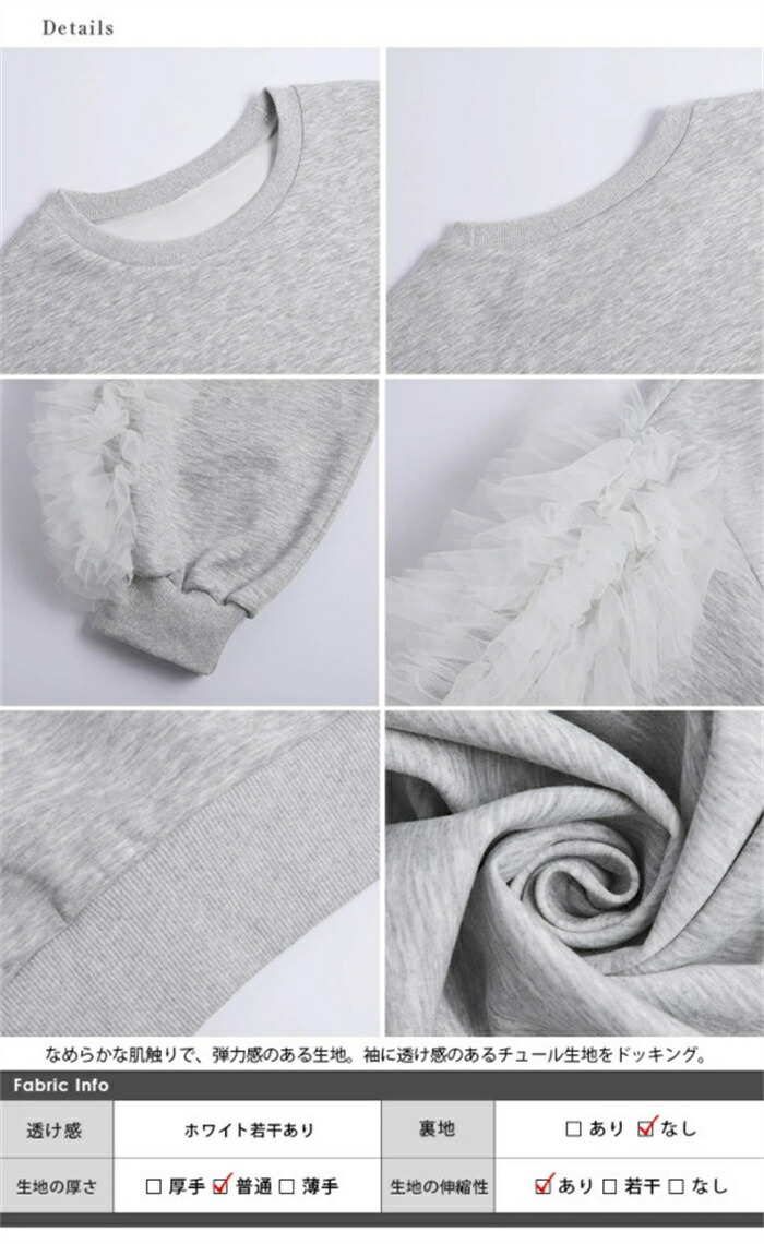 トレーナー レディース 秋冬 異素材切 トップス スウェット トレーナー 特集 黒 グレー ホワイト
