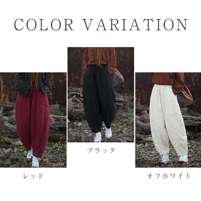 キルティングパンツ テーパードパンツ レディースファッション 新登場! ブラック レッド オフホワイト L XL 2XL