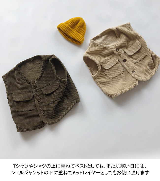 子供服 キッズ ベスト 前開き コーデ キッズ トップス ベスト 新登場! 80 90 100 110 120 130 ベージュ カーキグリン