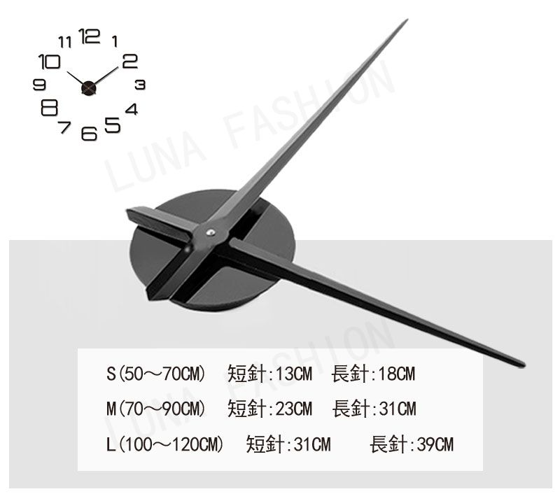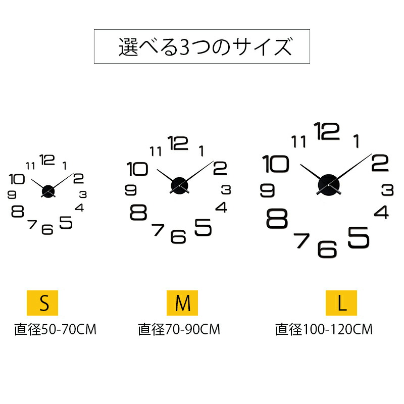 ウォールクロック 壁掛け時計 おしゃれ ブラック シルバー ゴールド ブラック+シルバー S直径50-70CM M直径70-90CM L直径100-120CM