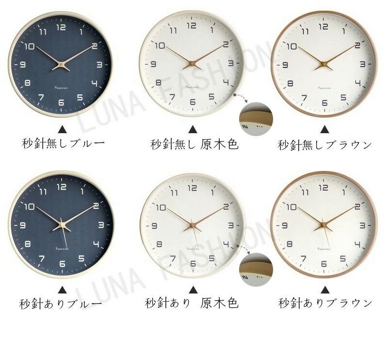 壁掛け時計 木枠 掛け時計 木製 Wa ブラウン ブルー ライトブラウン 原木色 無し あり