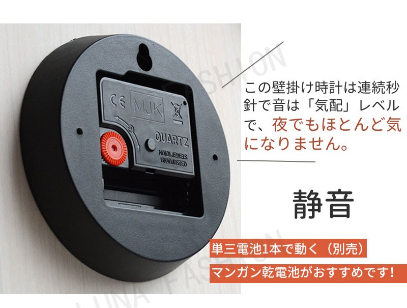 ◆この壁掛け時計は連続秒針で音は「気配」レベルで、夜でもほとんど気になりません。