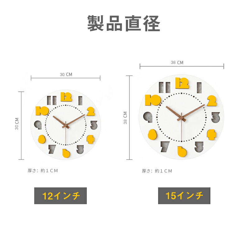 壁掛け時計 おしゃれ 木製 掛け時計 12インチ(30CM) 15インチ(38CM) typeA typeB typeC typeD