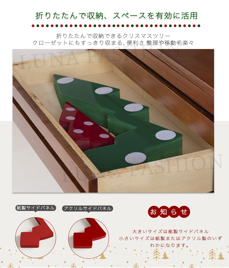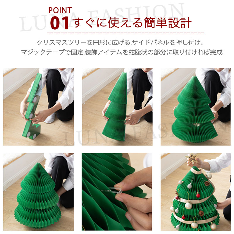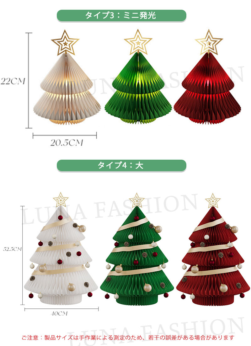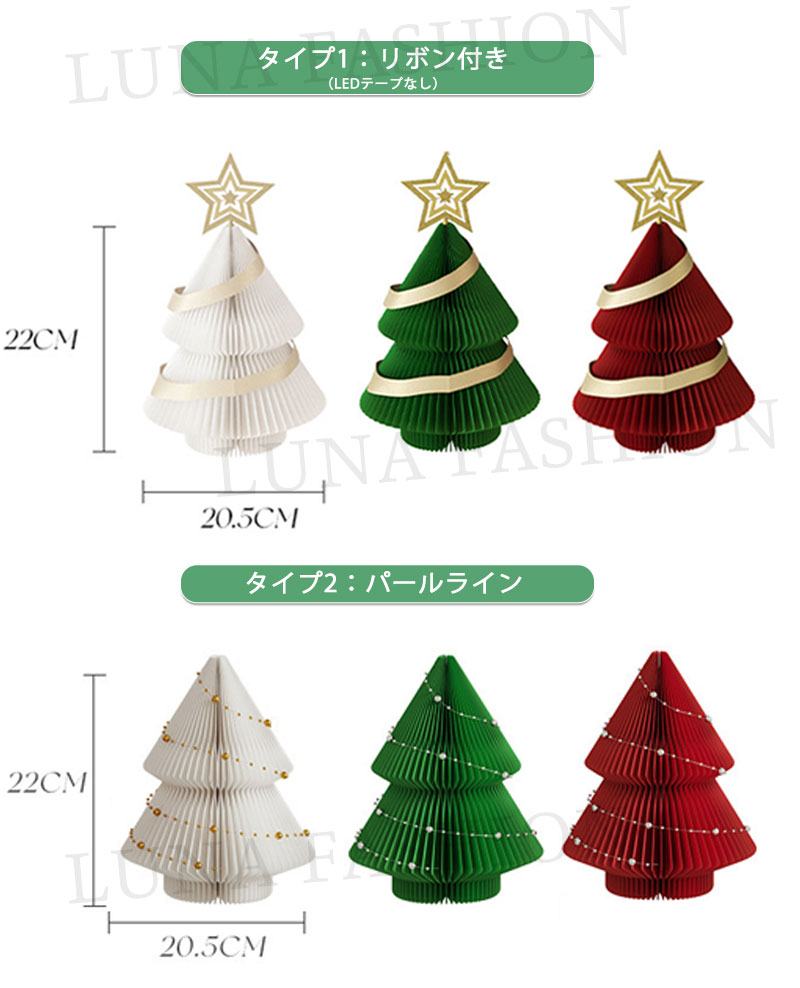 クリスマスツリー 折りたたみ紙製クリス タイプ1 タイプ2 タイプ3 タイプ4 ホワイト レッド グリーン