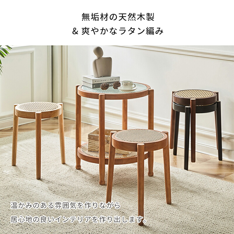 ラタンスツール スツールチェア 木製 ナチュラル ブラック ライトブラウン ブラウン