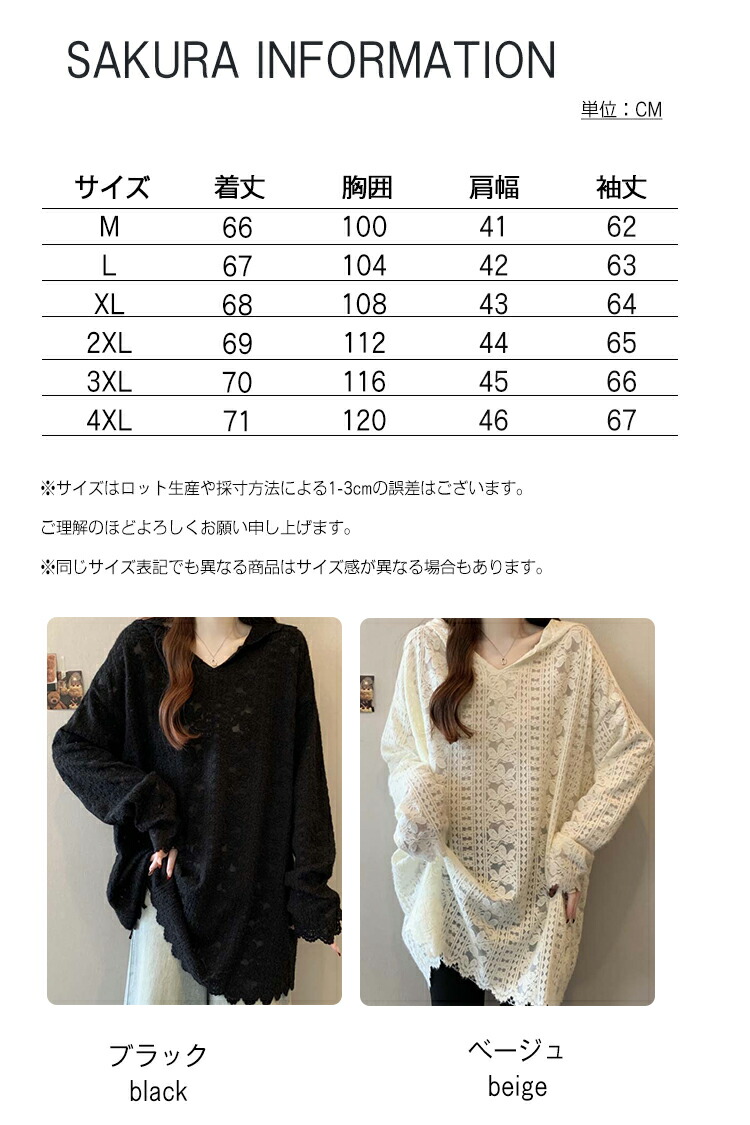 パーカー 総レースフード 長袖 レース レディースファッション 早い者勝ち M L XL 2XL 3XL 4XL ブラック ベージュ
