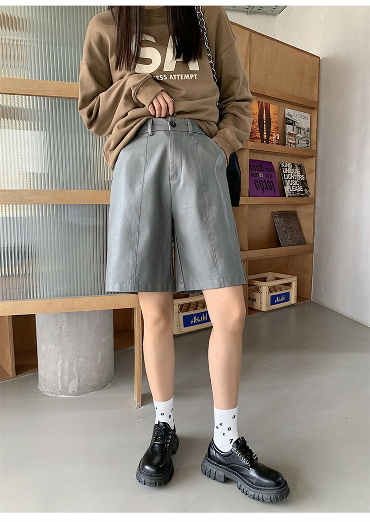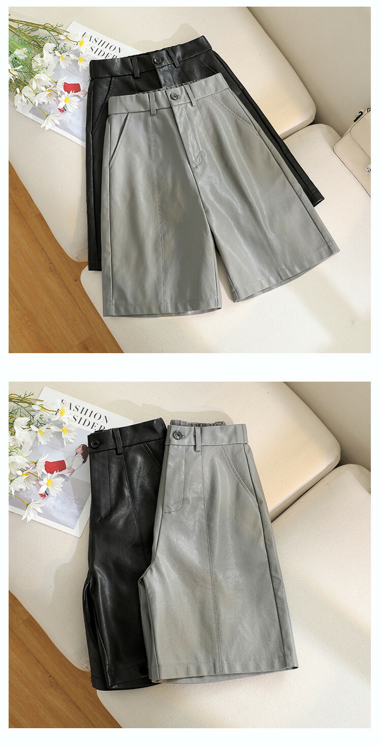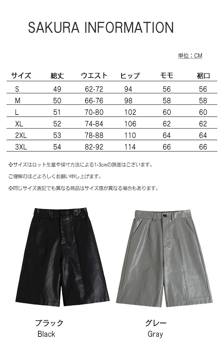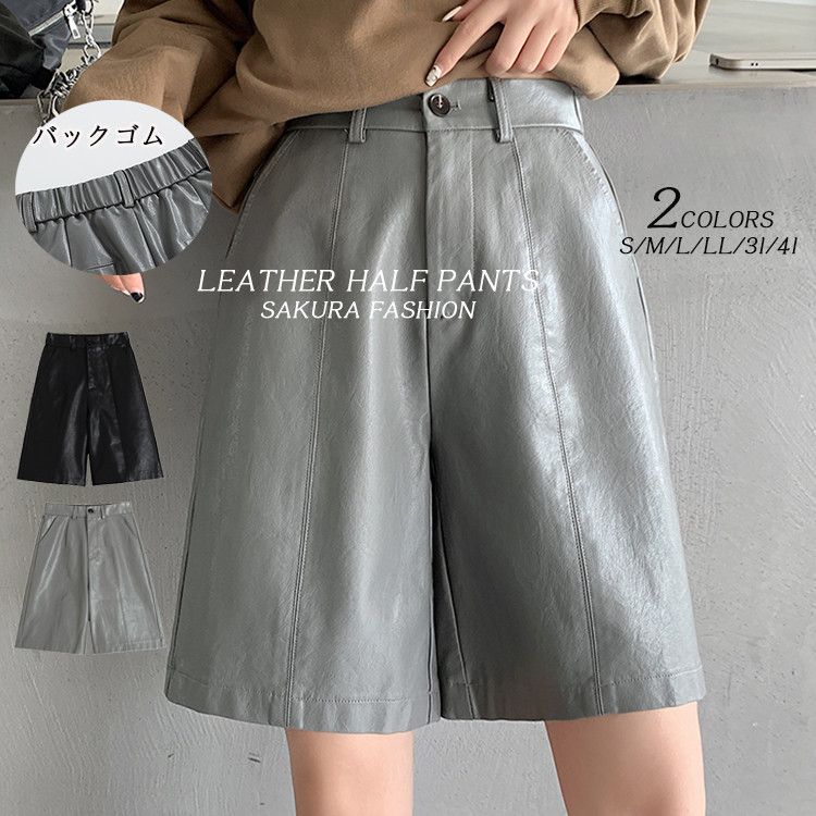 ブラック 黒 灰 グレー クレージュ レディース レディースファッション ボトムス パンツ ズボン ショート丈パンツ ショートパンツ ショーパン ショート丈 ショート ミニ丈 ミニ 短パン 半ズボン ハーフパンツ 短め 膝上 ひざ上 サイドポケット ポケット フロントファスナー フロントジップ ジップ ファスナー チャック ウエストゴム 後ろゴム バックゴム ゴム レザースカート レザー フェイクレザー 合成皮革 皮革 合皮 柔らかい ゆったり 楽ちん 楽チン カジュアル ナチュラル おしゃれ オシャレ 可愛い かわいい きれいめ キレイめ 大人 オトナ 上品 シンプル 春 春服 春物 秋 秋服 秋物 冬 冬服 冬物 服 新作 新着 サクラ SAKURA