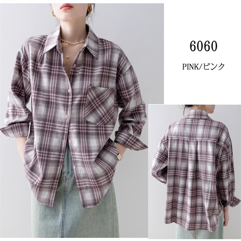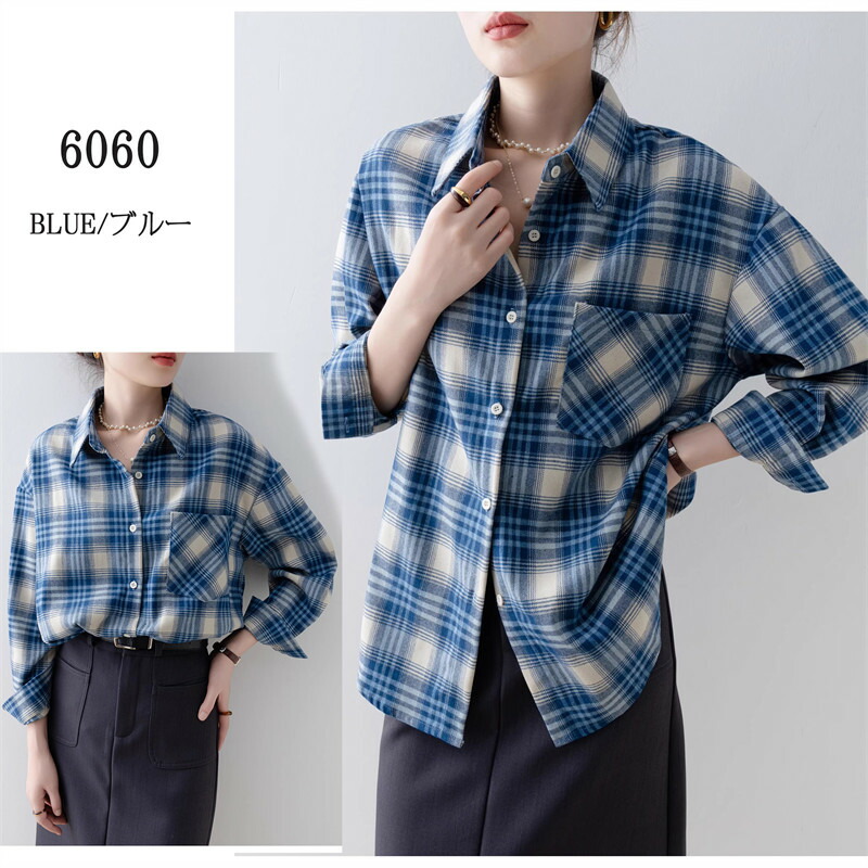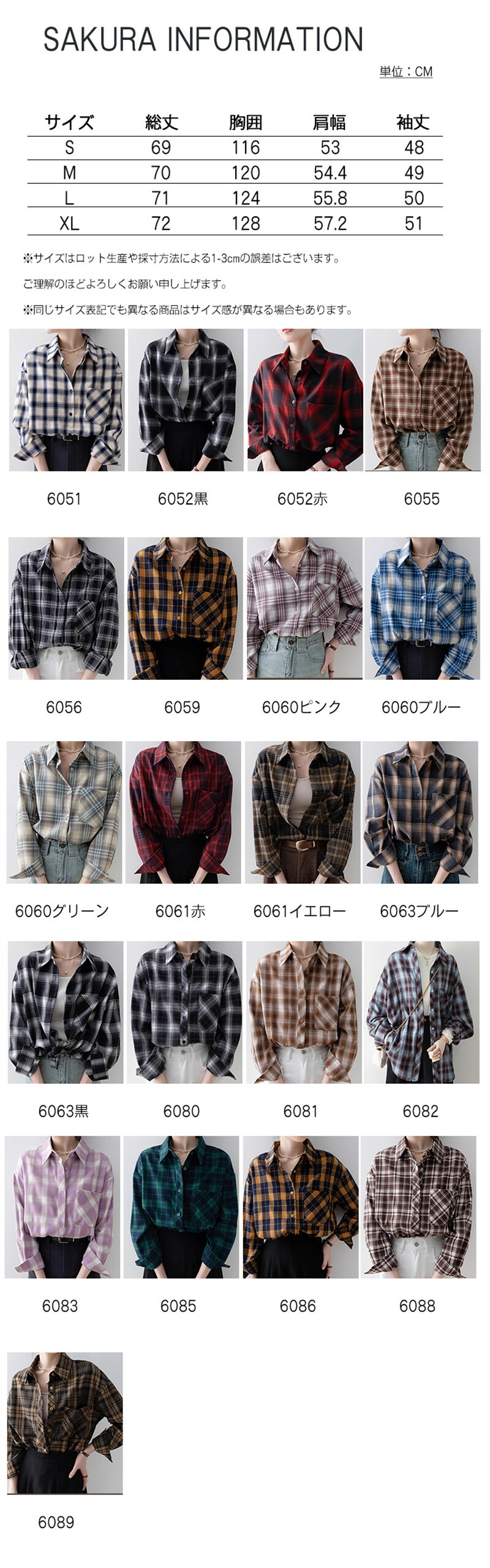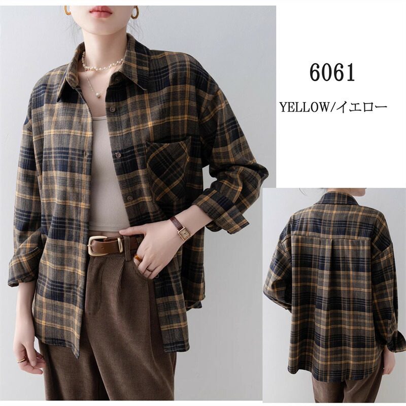 チェックシャツ レディース 長袖 ネル トップス シャツ ブラウス 続々登場 6051 6055 6056 6059 6060ピンク 6060ブルー 6060グリーン 6061イエロー 6063ブルー 6063黒 6080 6081 6082 6086 6088 6089 S M L XL