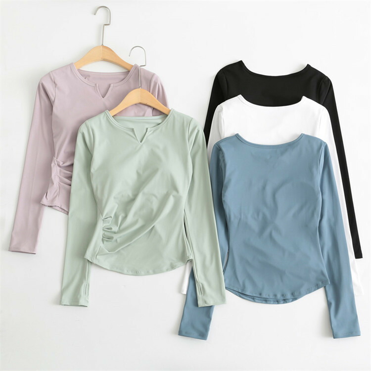 ヨガウェア ヨガ トップス 長袖 カッ スポーツ アウトドア 豊富な品揃え S M L XL 黒 白 ラベンダー ミント ブルー カーキ イエロー