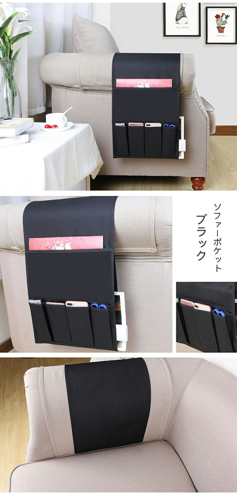 リモコンポケット サイドポケット 収納 ベージュ グレー ブラック 44.5x32.5cm 97x32.5cm