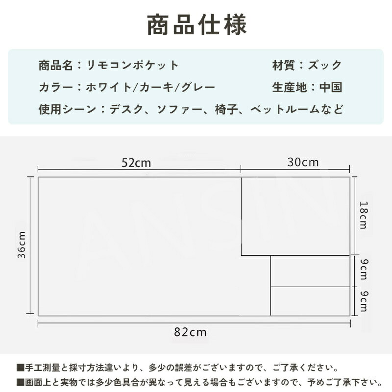 リモコンポケット サイドポケット 収納 ホワイト グレー カーキ