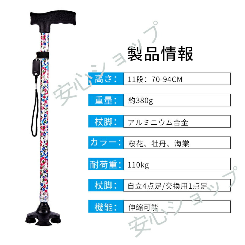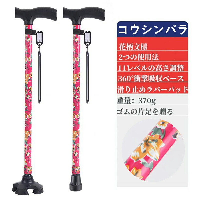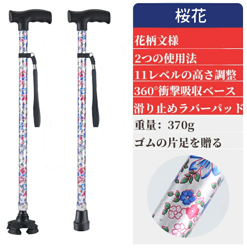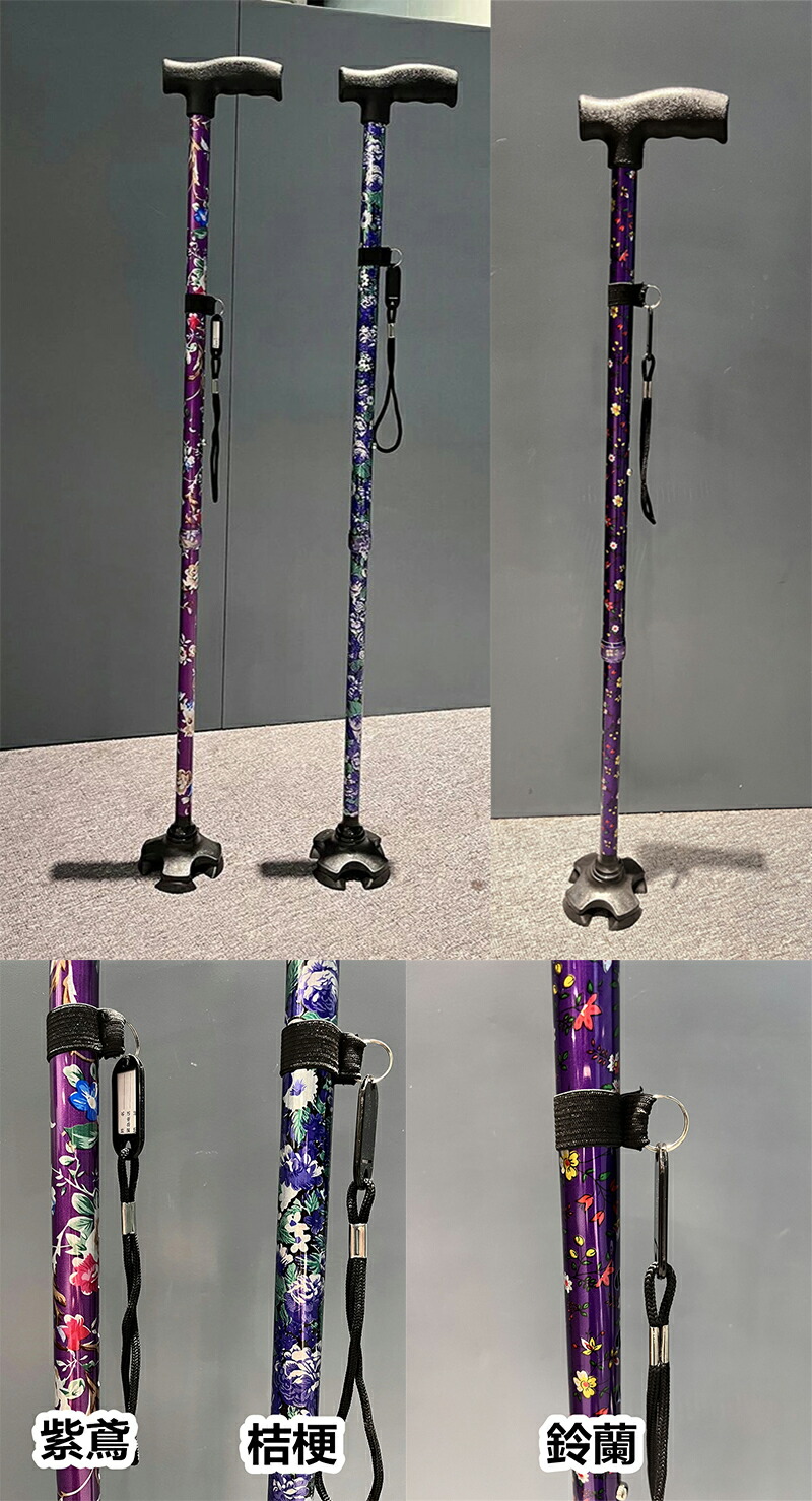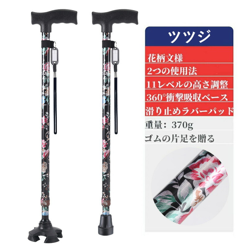 杖 おしゃれ 自立式 四点杖 4点杖 海棠 桜花 ぼたん 桔梗 紫鳶 多花 ブラック ワインレッド ツツジ コウシンバラ 折り畳みタイプ-黄フラワー 折り畳みタイプ-青フラワー 折り畳みタイプ-赤フラワー 折り畳みタイプ-無地黒色 70-94CM 83-93cm