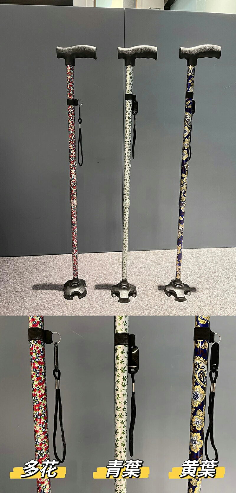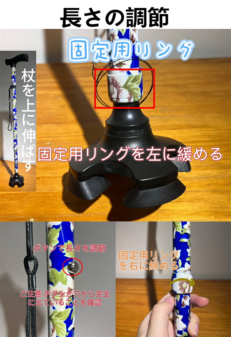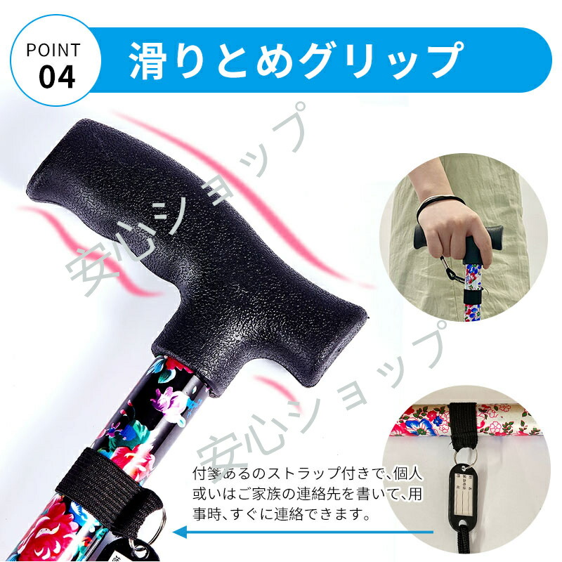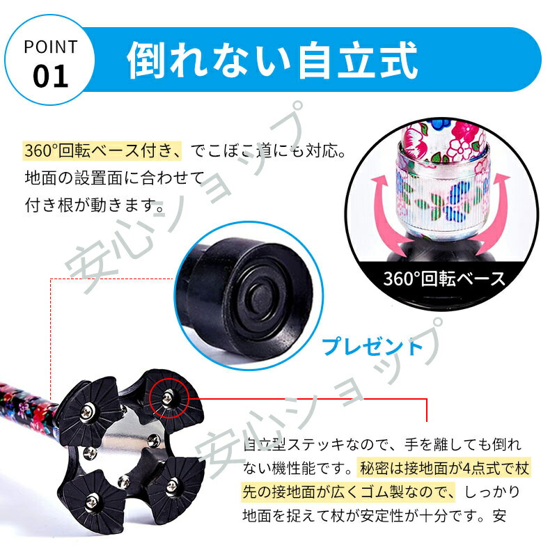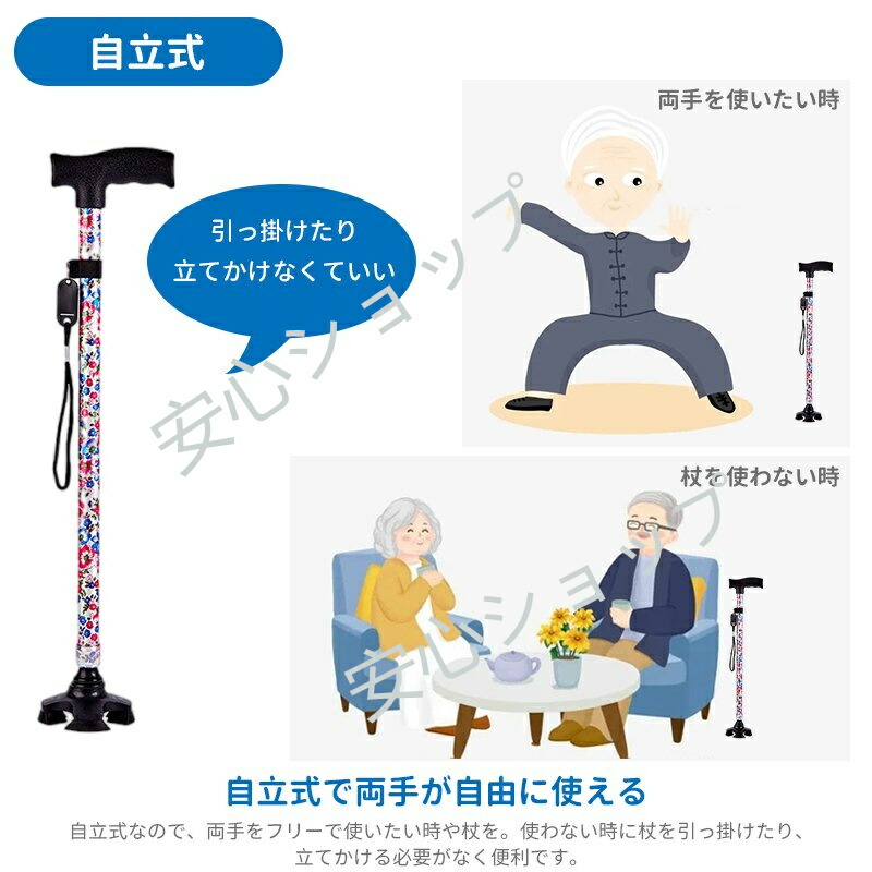 杖 おしゃれ 自立式 四点杖 4点杖 海棠 桜花 ぼたん 桔梗 紫鳶 多花 ブラック ワインレッド ツツジ コウシンバラ 折り畳みタイプ-黄フラワー 折り畳みタイプ-青フラワー 折り畳みタイプ-赤フラワー 折り畳みタイプ-無地黒色 70-94CM 83-93cm
