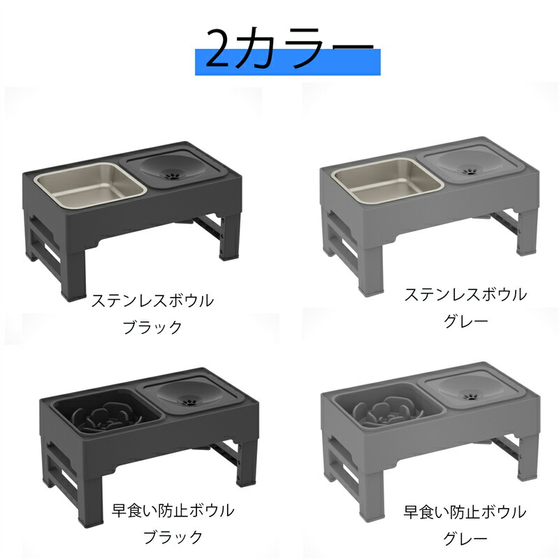 ペット食器台 犬用 猫用 早食い防止 ブラック グレー 早食い防止ボウル ステンレスボウル