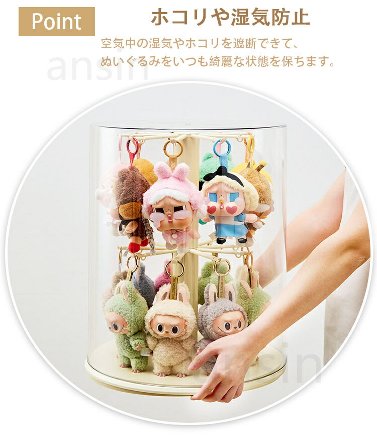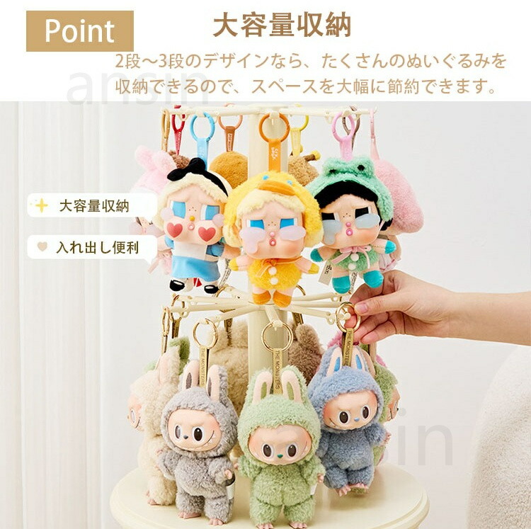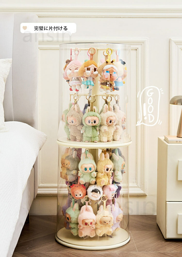 ぬいぐるみ収納ケース フィギュアケース 2段 3段 コレクションケース 透明円柱収納 回転可能 透明 回転式 積み重ね可能 掛けられる 大容量 ケース 子供部屋収納 クリア