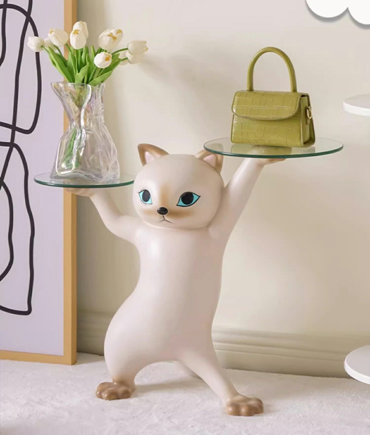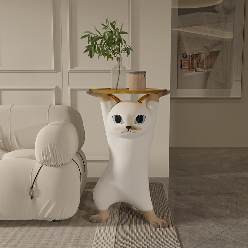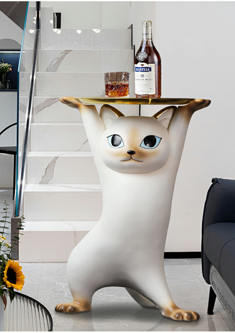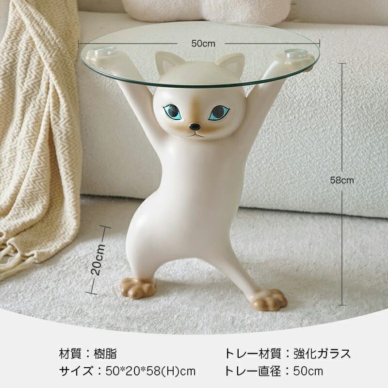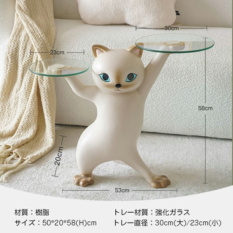 キャットサイドテーブル サイドテーブル ホワイト ブラウン 金属(ダブルトレー) ガラス(シングルトレー) ガラス(ダブルトレー) S:高さ62CM M:高さ72CM 高さ58cm