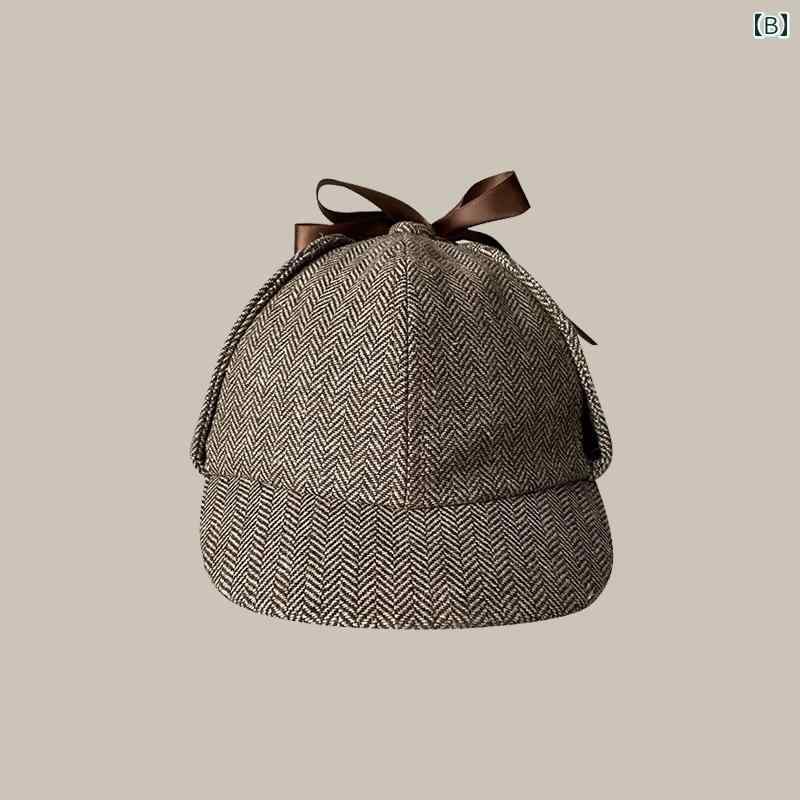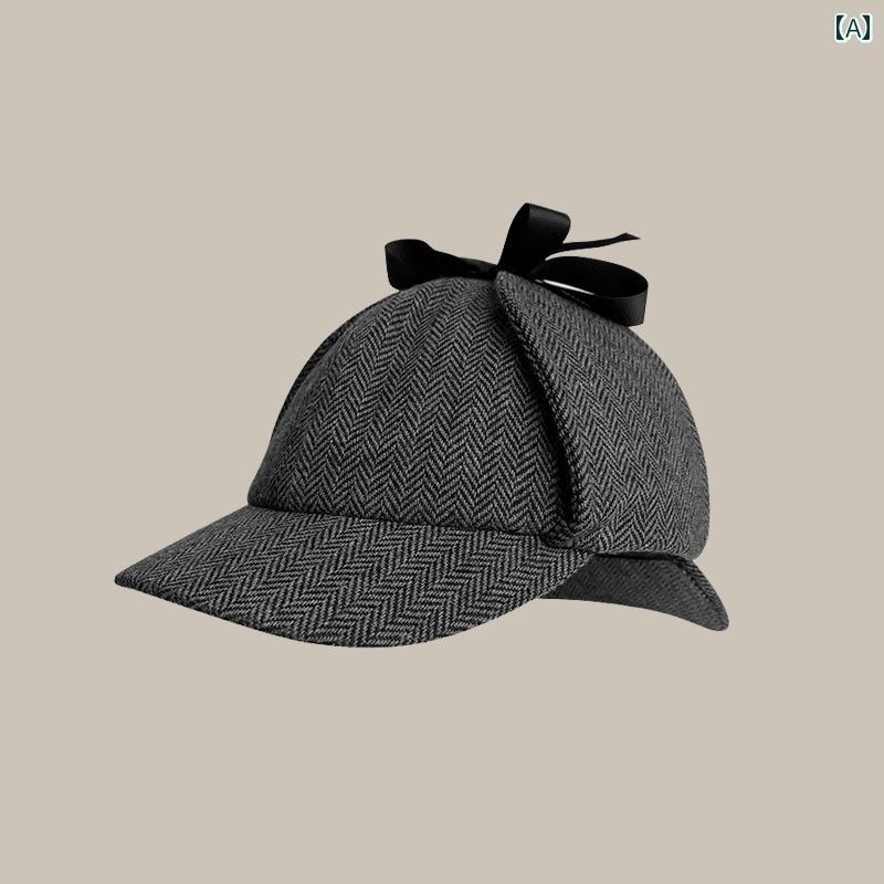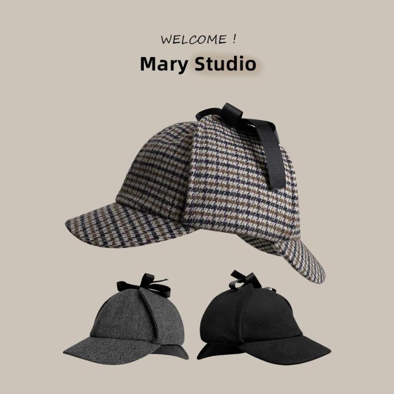 探偵 帽子 つば イヤーカバー ひさし バッグ 小物 ブランド雑貨 通販 A:ダークグレーのヘリンボーン B:カーキのヘリンボーン柄 C:イエロー 千鳥格子 D:ブラウン ブルーとホワイト E:フランジベージュホームズ F:タンホームズ G:ブルーヘリンボーン H:ブラックツイルホームズ I:黒の背景 M(56-58cm) L(58-60cm)